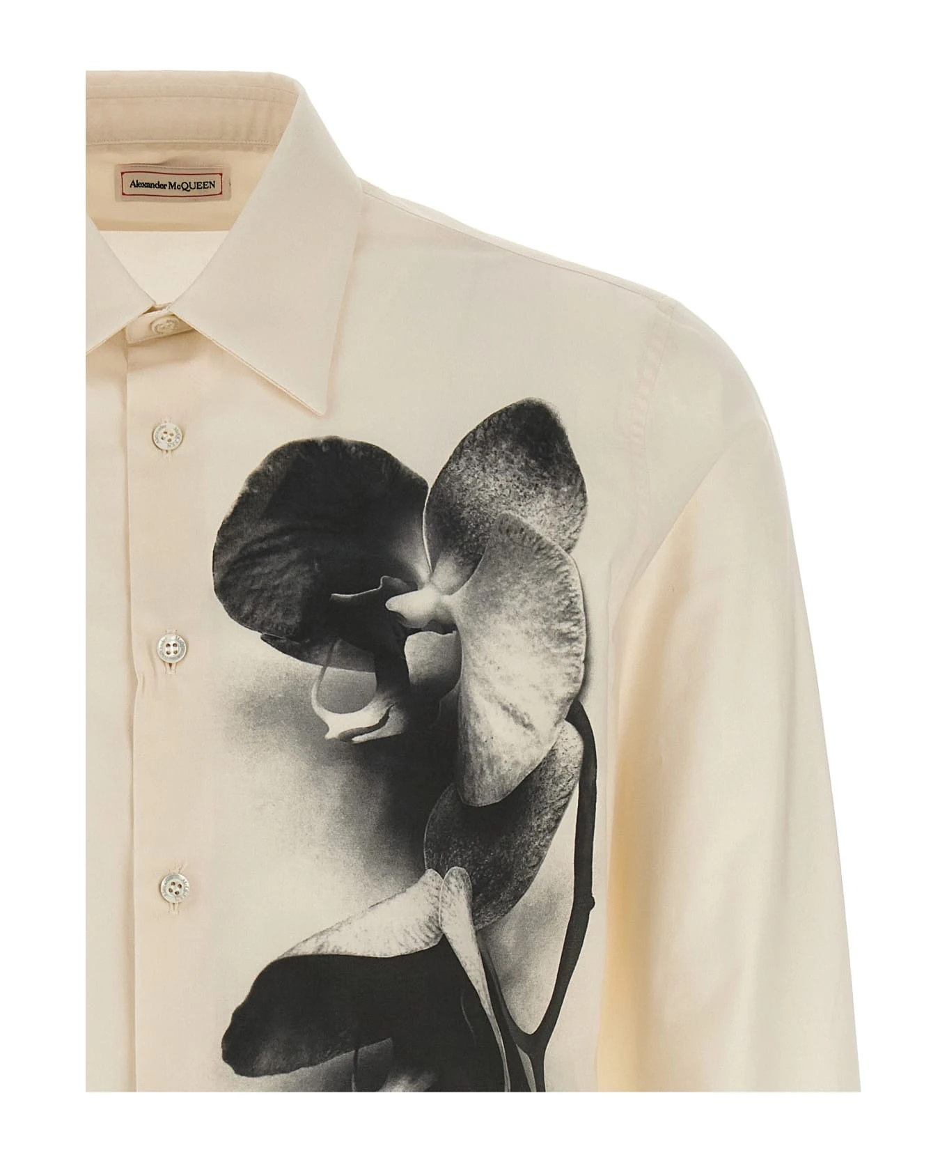 Ink flower’ poplin cotton shirt with contrast print, button closure.