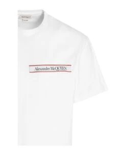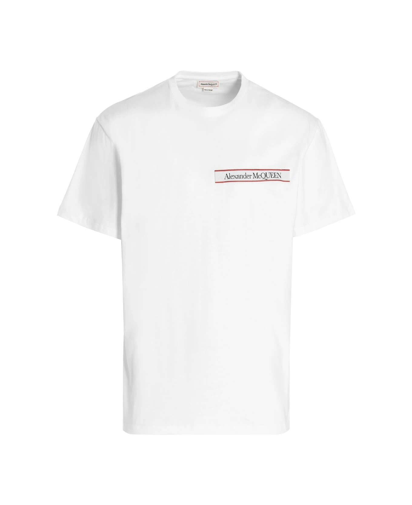 Cotton crew neck t-shirt with short sleeves and front logo tape detail.