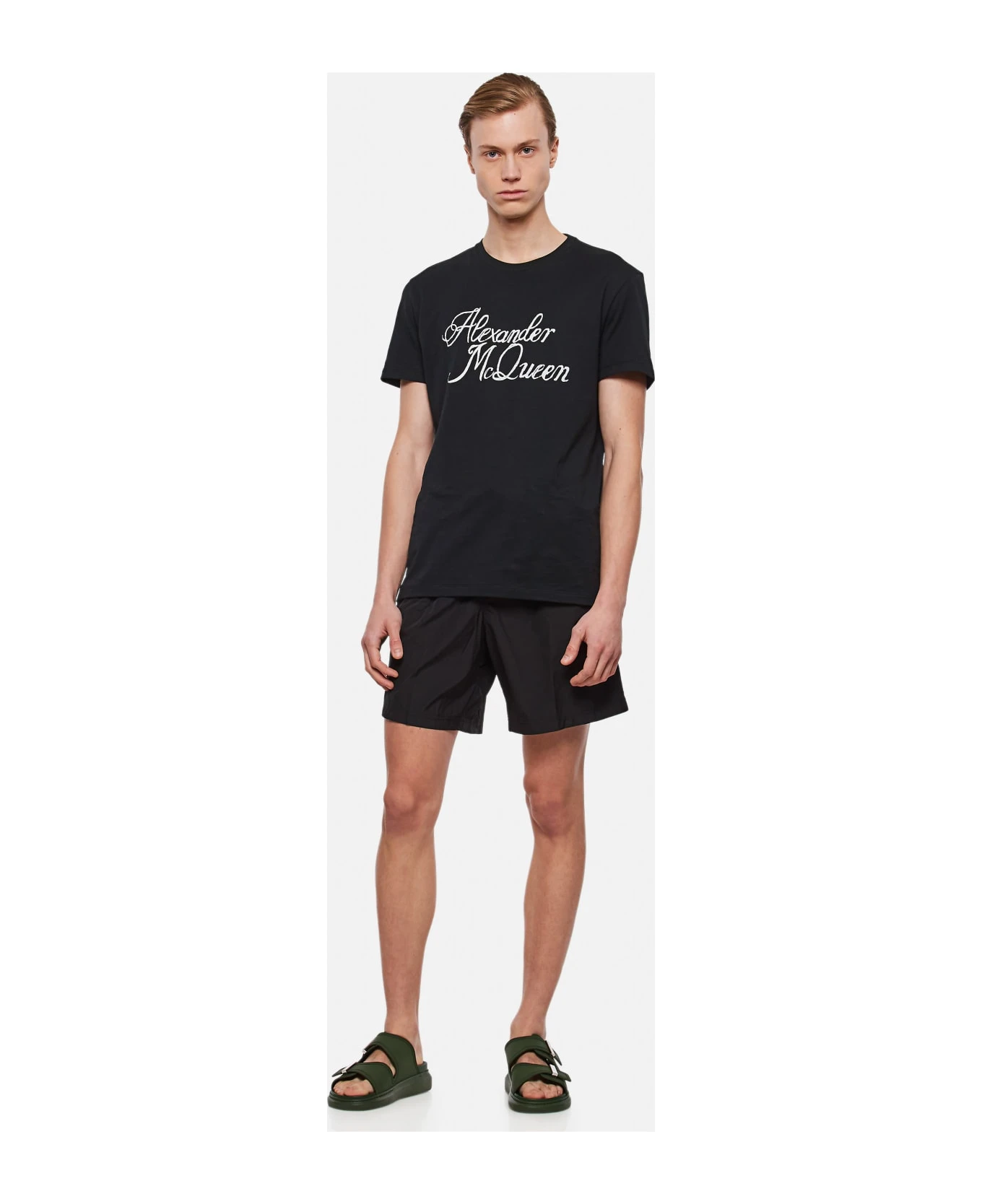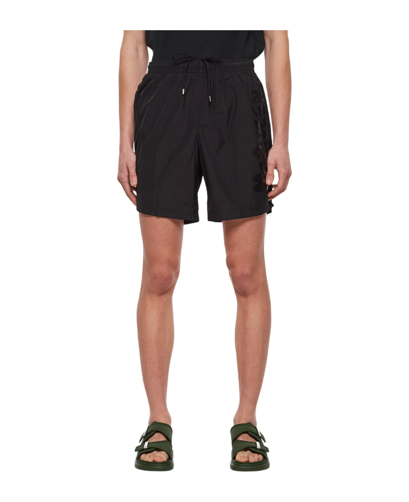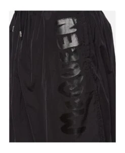 Elastic waistband. Mesh lining. Two side pockets. Graffiti print on the left leg. Colour: black.