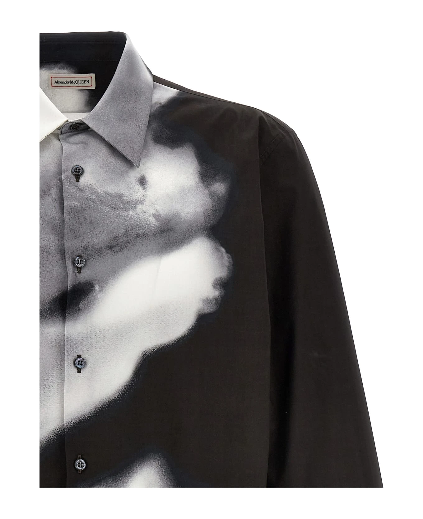 Cotton shirt with all-over print, a button closure, and long cuffed sleeves.