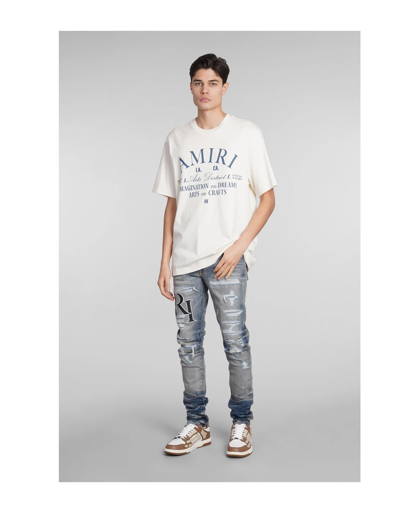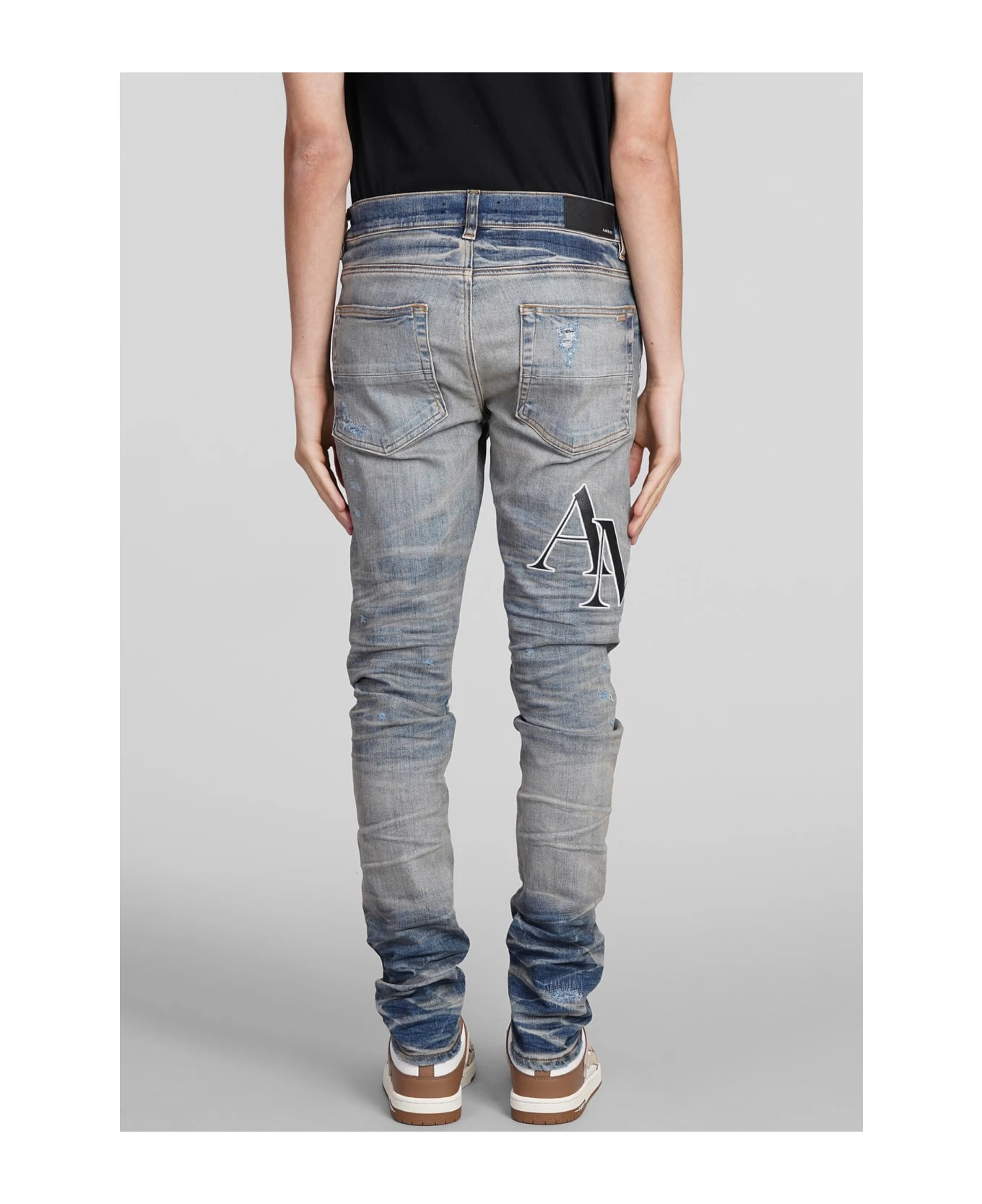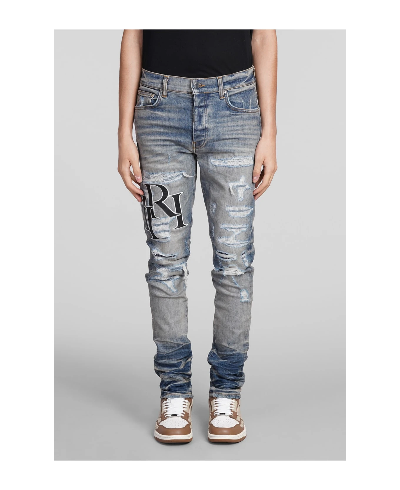 Jeans in blue cotton, button and zip closure, belt loops, five pockets, patch logo on leg, sandblasted, destroyed effect, skinny fit, 92 % cotton , 6% elastomultiester, 2% elastan, Made in Usa