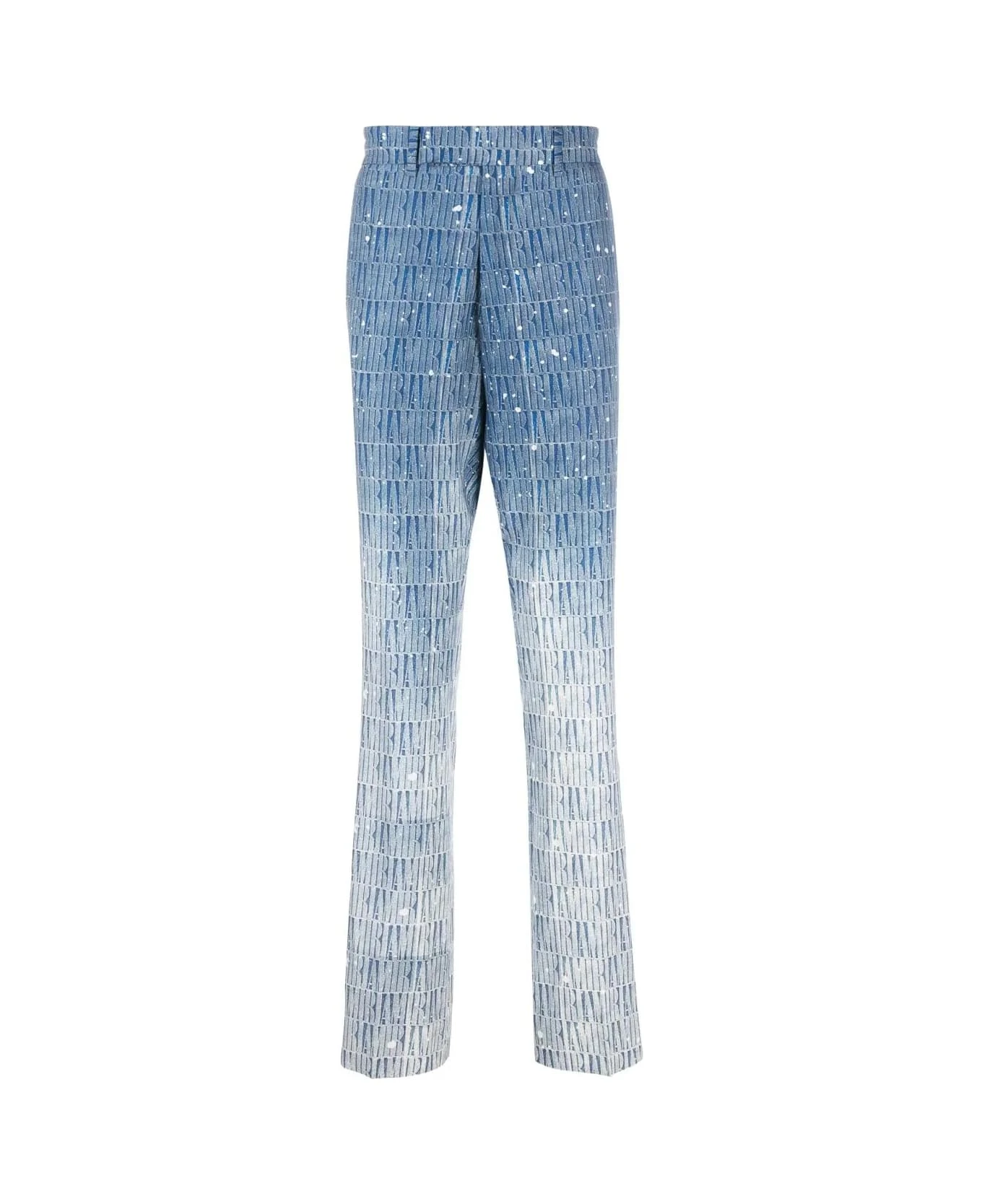 Straight-leg trousers by Amiri made of blue wool blend with shaded effect and all-over monogram pattern. The garment features a mid-rise waist, belt loops, a concealed front closure, two side pockets and two back double-wire pockets.