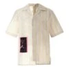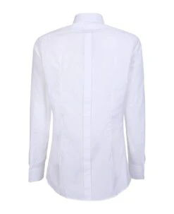 Straight-point collar. Long sleeves. Logo plaque. Front button fastening. Color: white