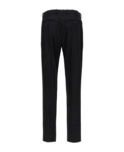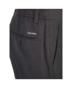 Black tailored trousers from Dolce & Gabbana in wool, all over jacquard monogram, button and concealed zip fastening, front French pockets, back welt pockets with buttons, regular fit, belt loops.