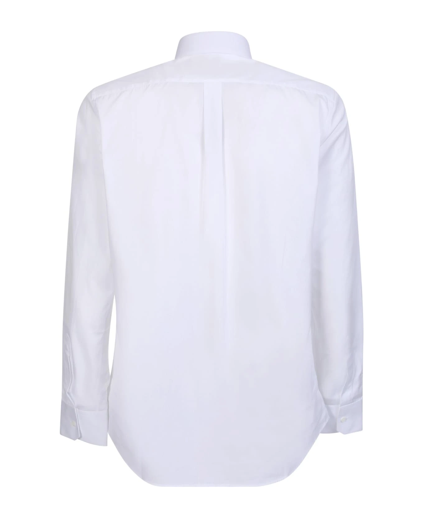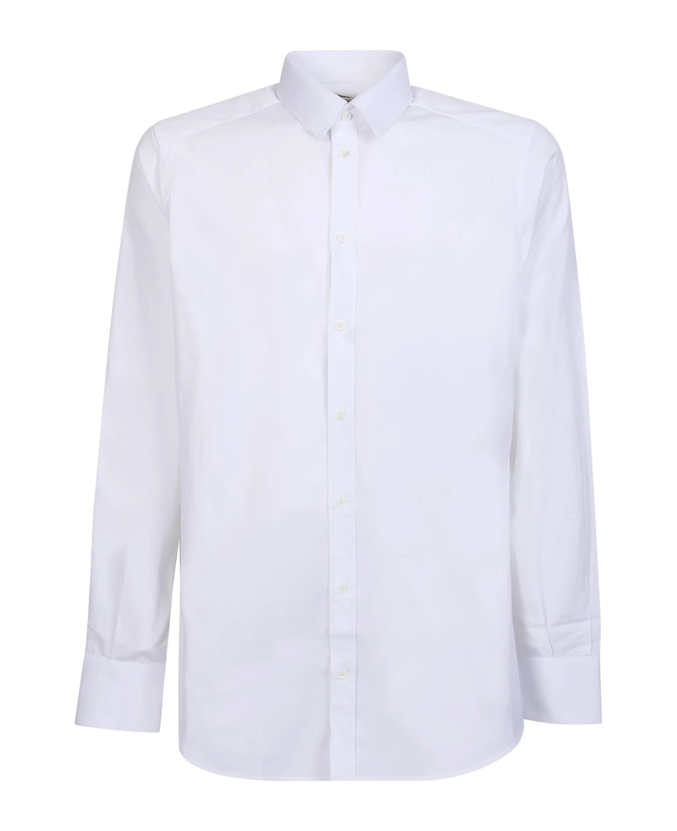 Classic collar. Front button fastening. Long sleeves. Buttoned cuffs. Straight hem. Color: white