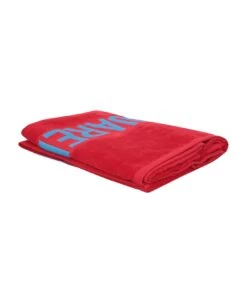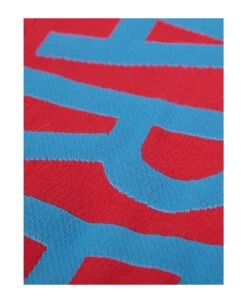 Rectangle shape. Textured finish. Emrboidered logo to the front. Contrasting logo. Straight hem. Color: red/ blue