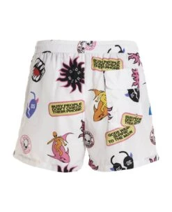 ‘Surfing Wirdo’ swim shorts in tech fabric with all-over print, drawstring elastic waistband, pockets and inner mesh briefs. mesh briefs.