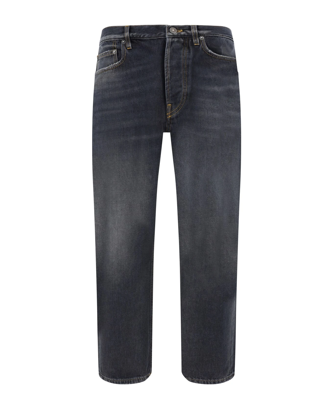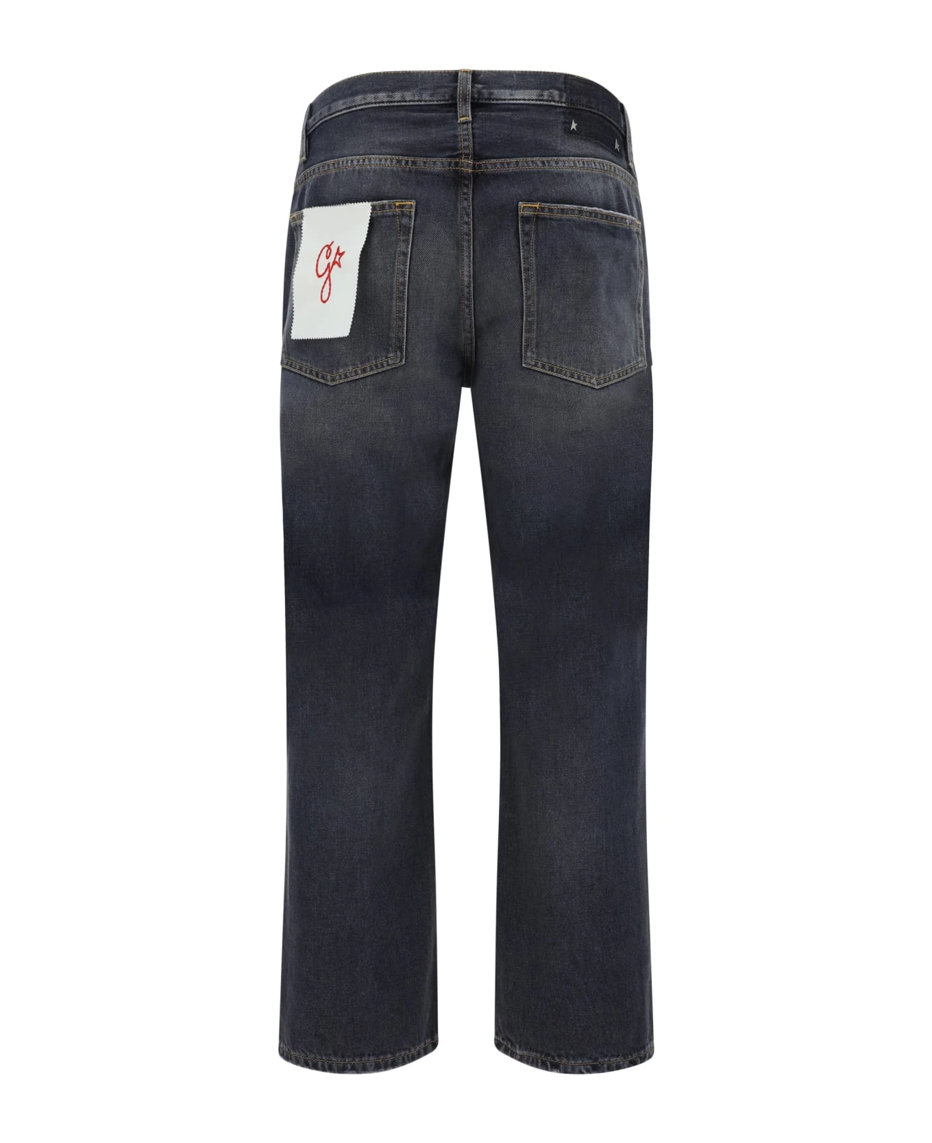 Cotton cory skate jeans by golden goose, five-pocket straight style, front button closure, waistband loops, iconic fabric patch with contrasting embroidered brand signature and applique at back.