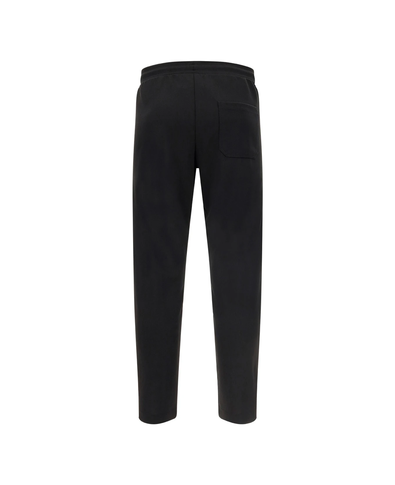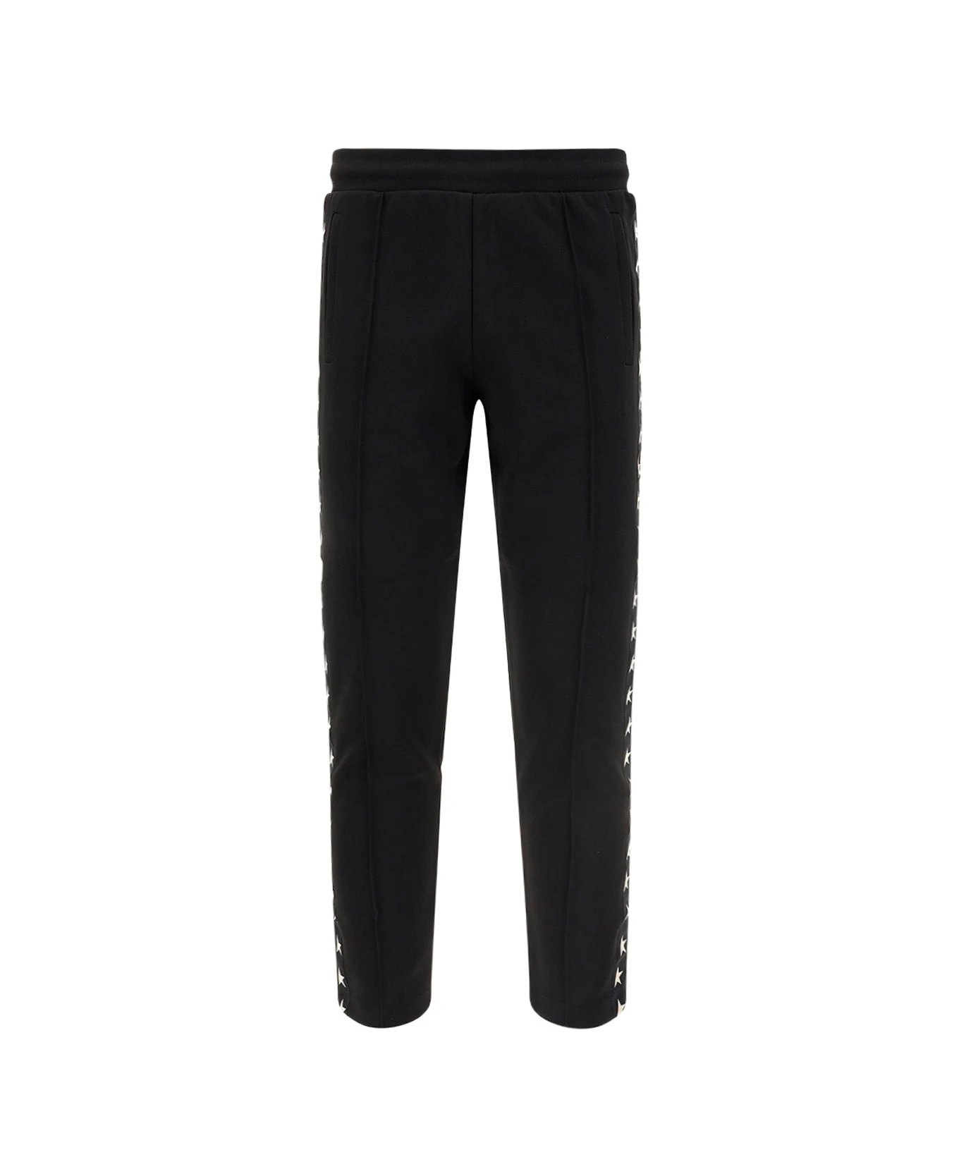 Joggins pants by golden goose, elasticized waistband, two side welt pockets, side bands with iconic all-over contrast printed brand logo, one welt pocket on the back.