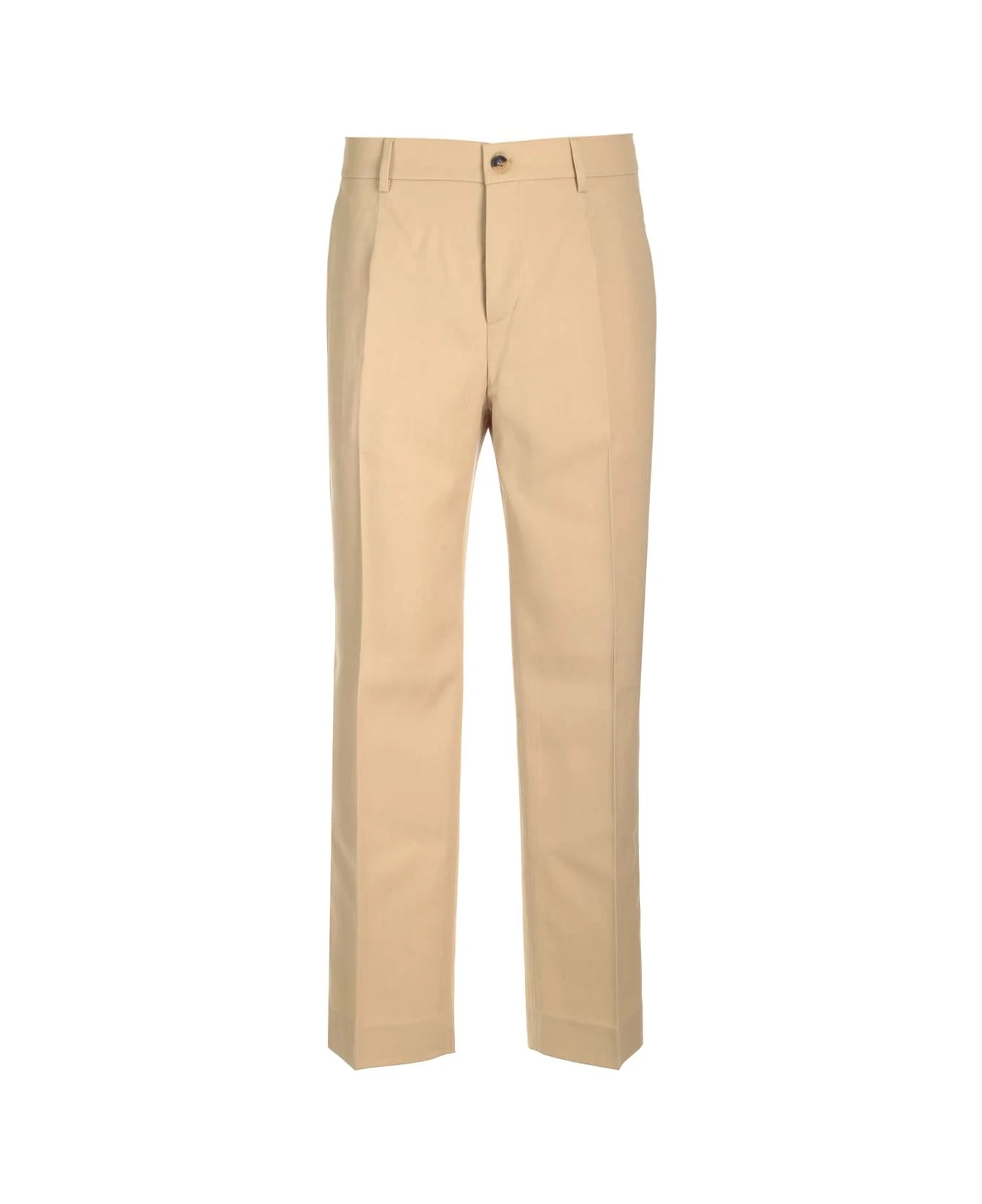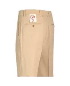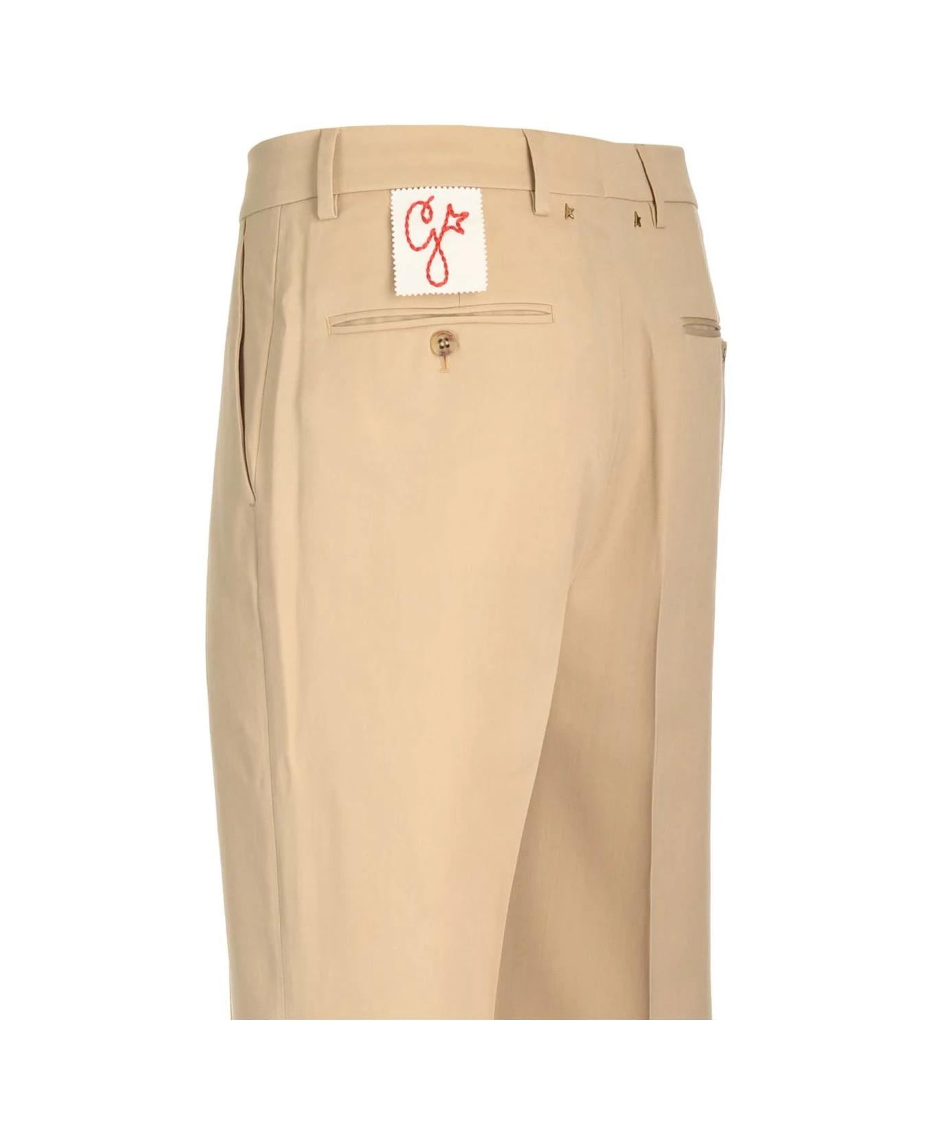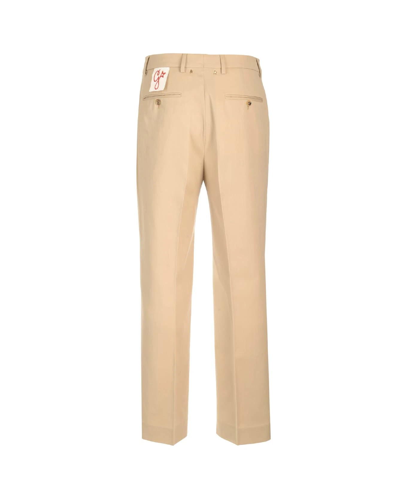 Beige wool drill tailored trousers from Golden Goose, with high waist and straight leg, side pockets and buttoned pockets on the back.