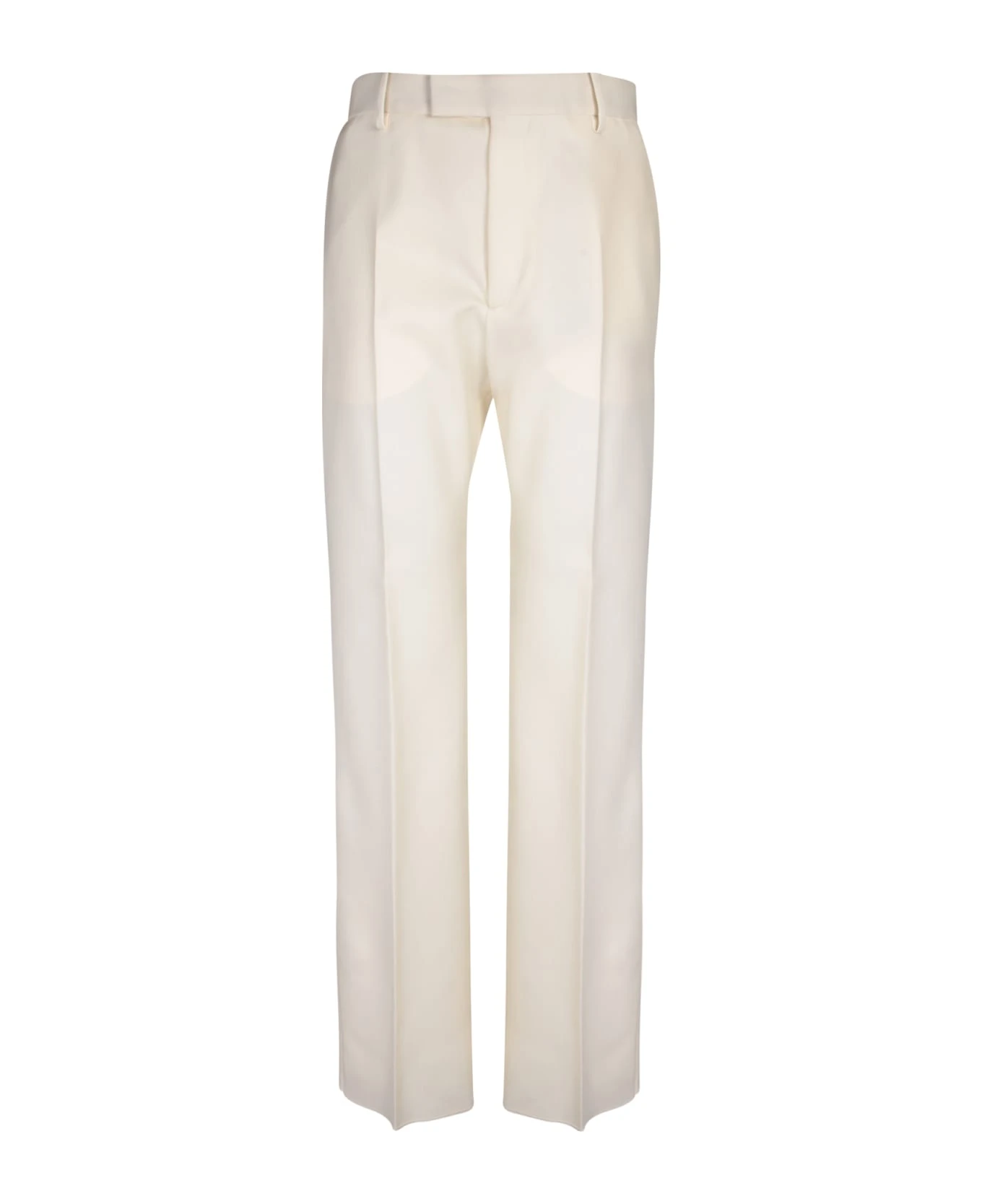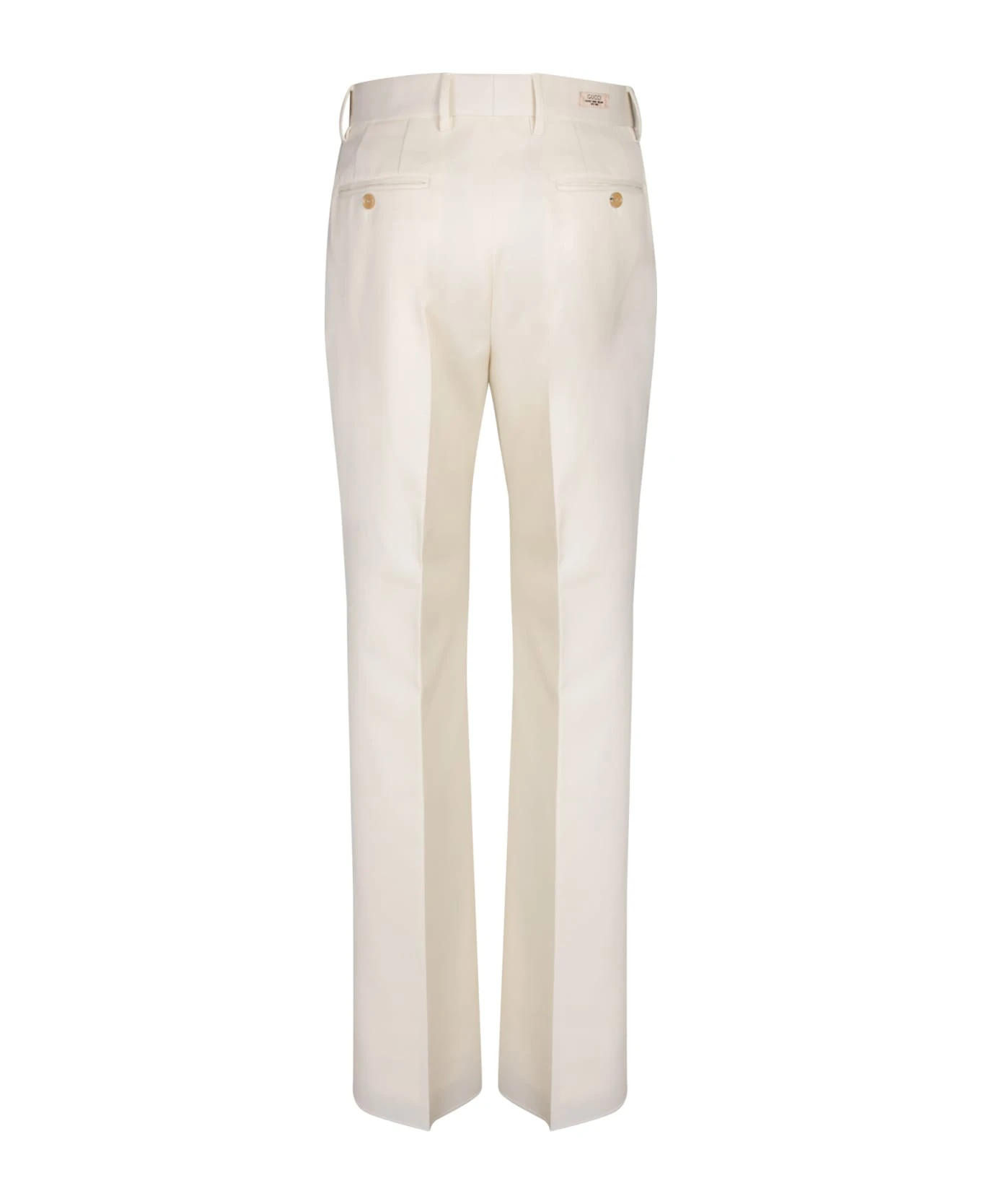 Mid-rise. Concealed front fastening. Belt loops. Two side pockets. Two rear button fastening pockets. Logo patch to the rear. Straight hem. Color: cream