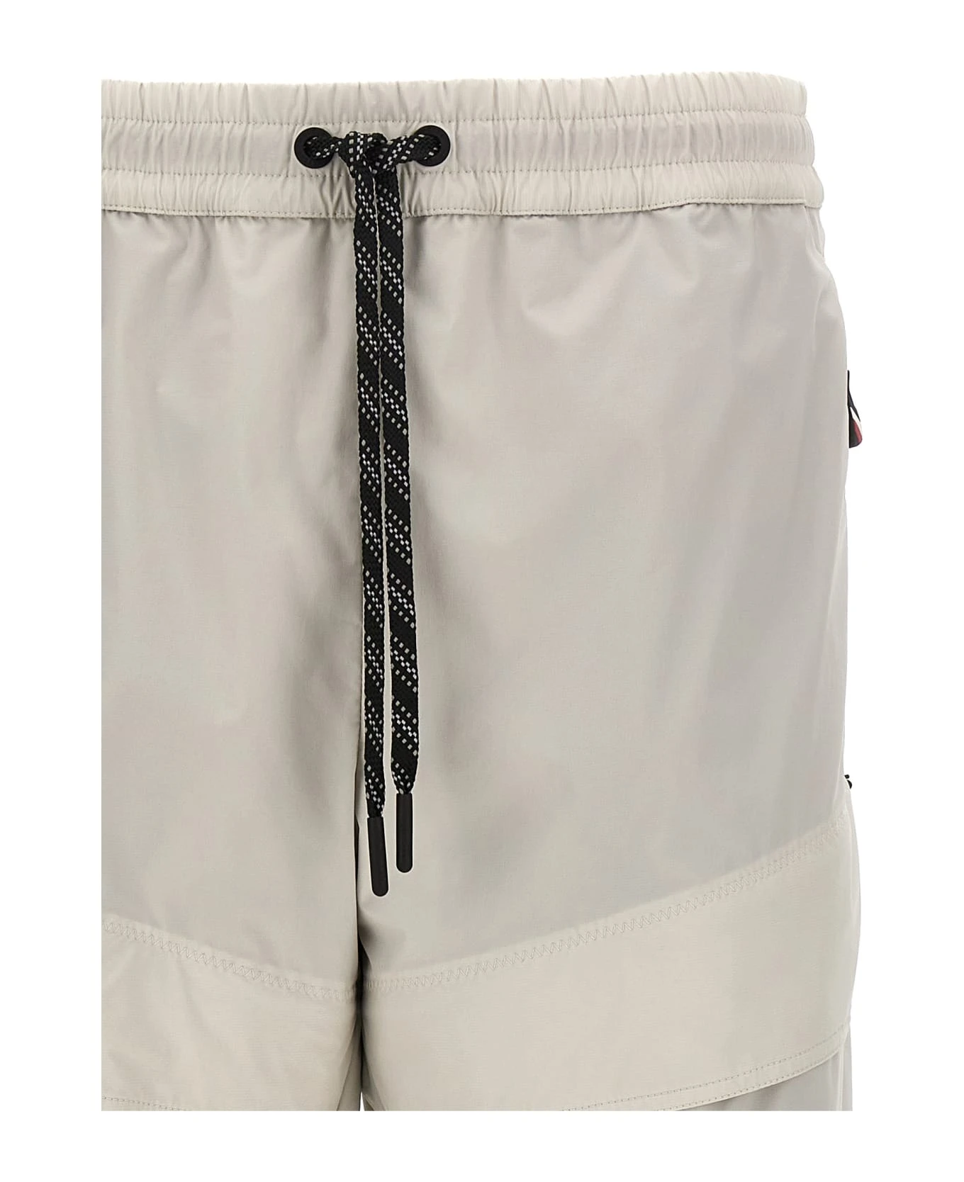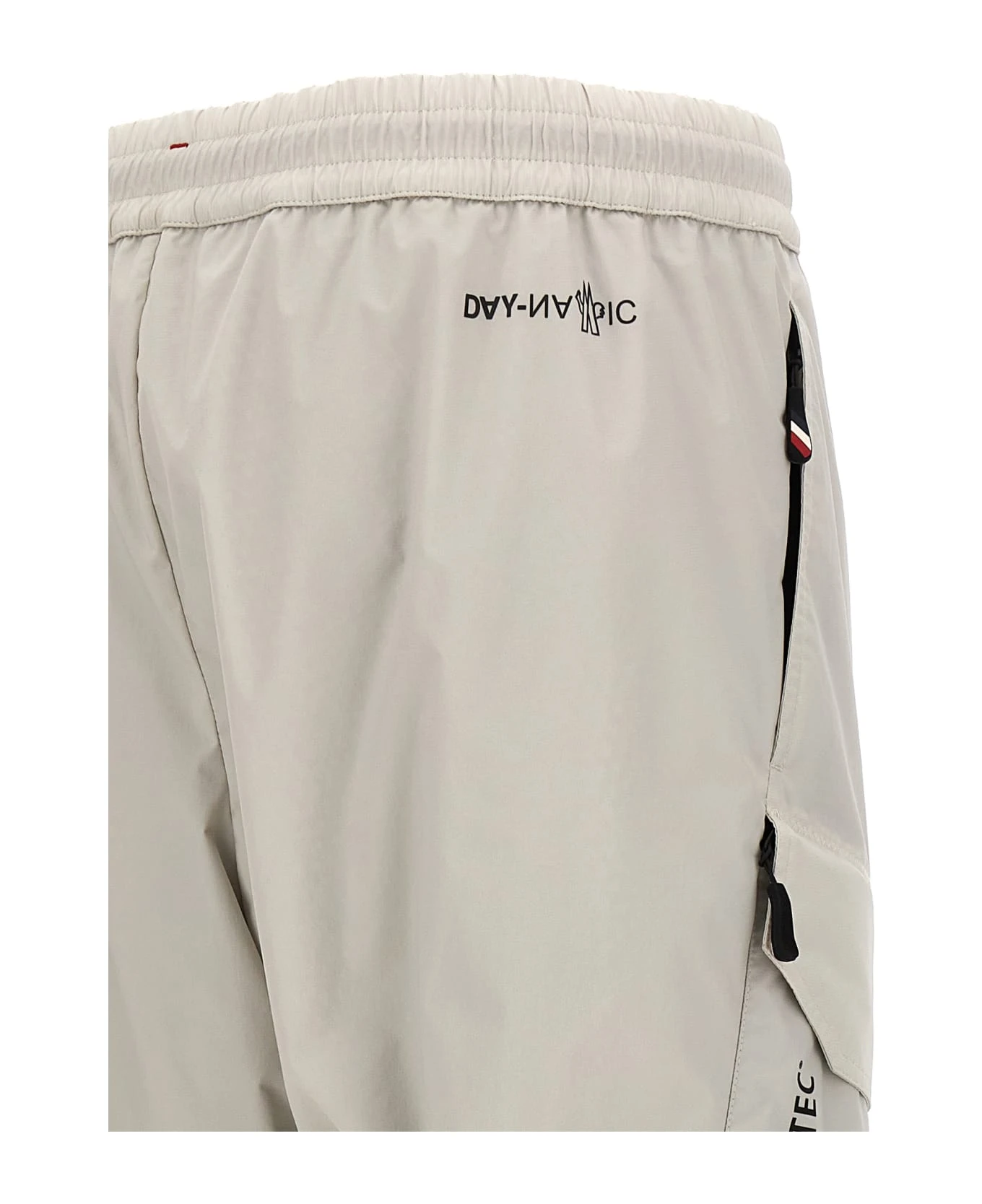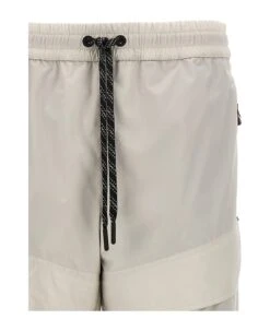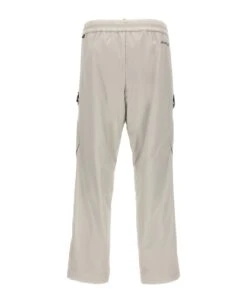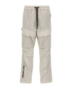 Lightly padded nylon pants, logo print, elastic and drawstring at the waist, pockets.