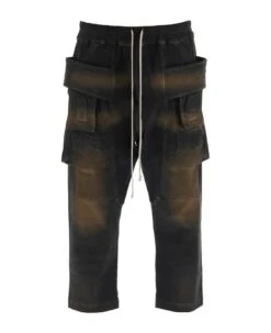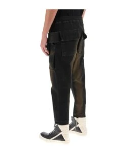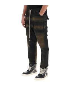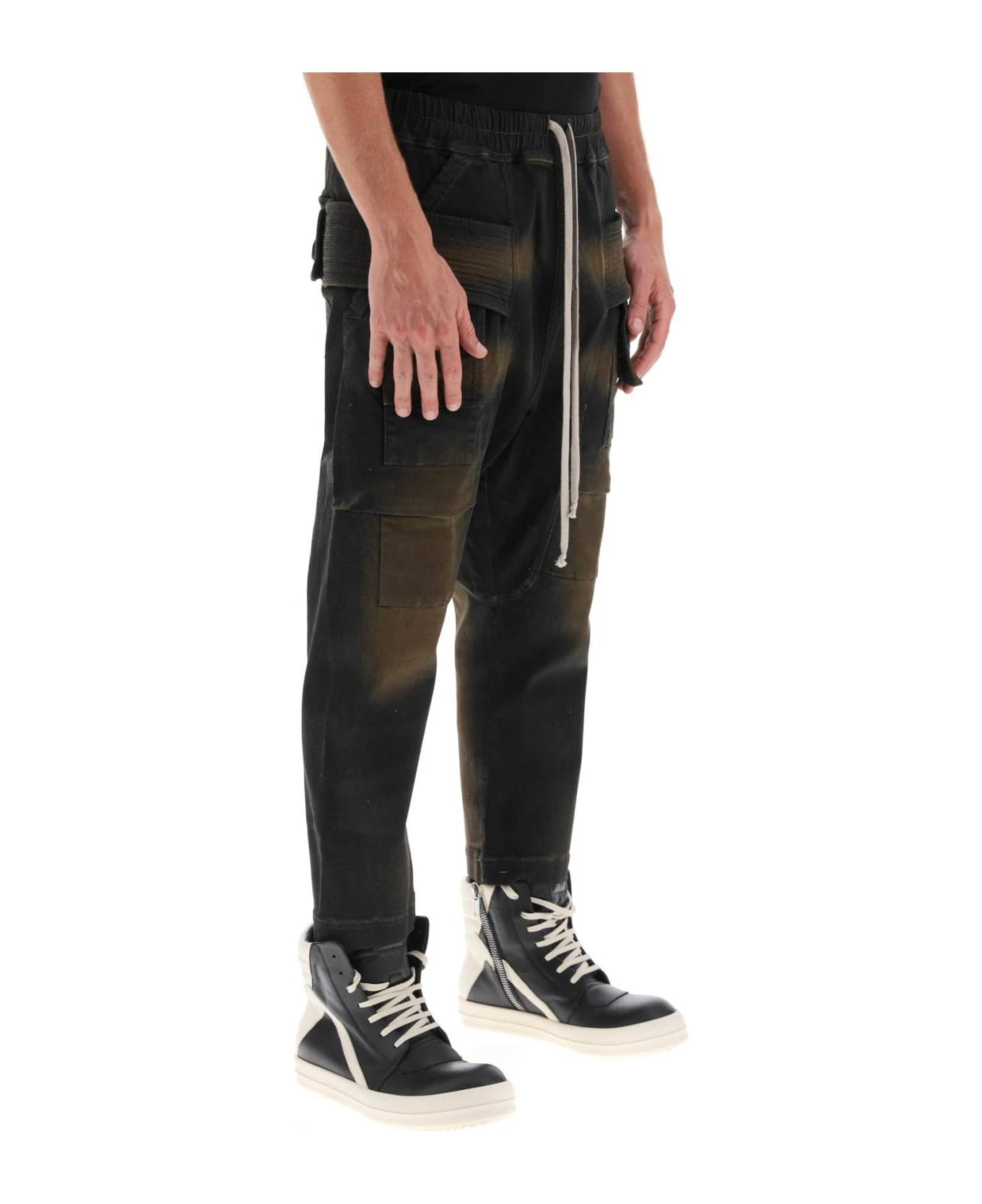 DRKSHDW jeans crafted in faded-effect stretch-cotton denim. Cargo design with utility pockets on the legs featuring elasticated waistband with contrasting drawstring, side slash pockets and topstitched inserts on the hips. Loose fit with low crotch. The model is 187 cm tall and wears size L.