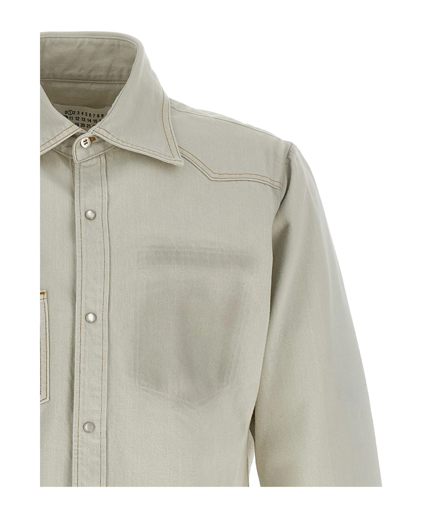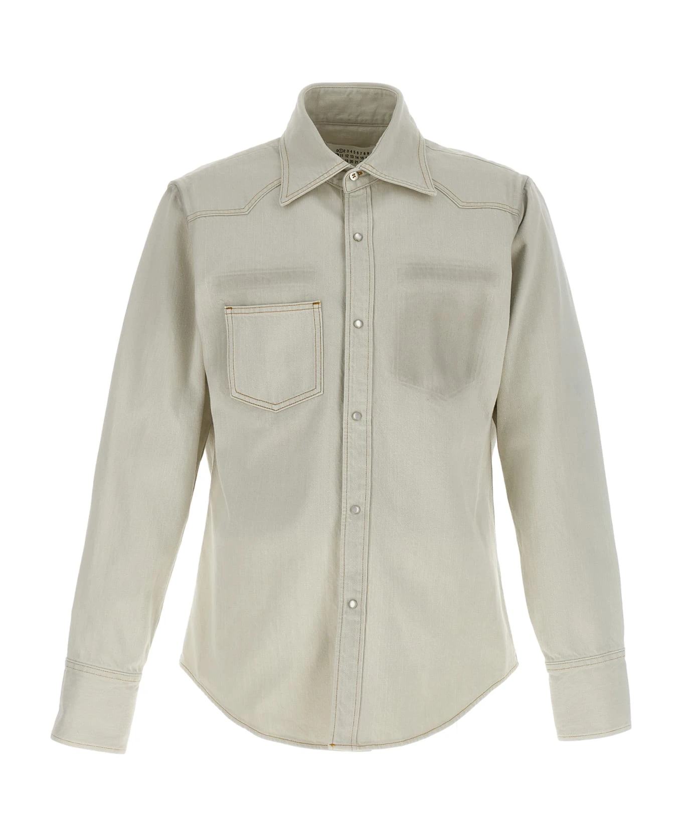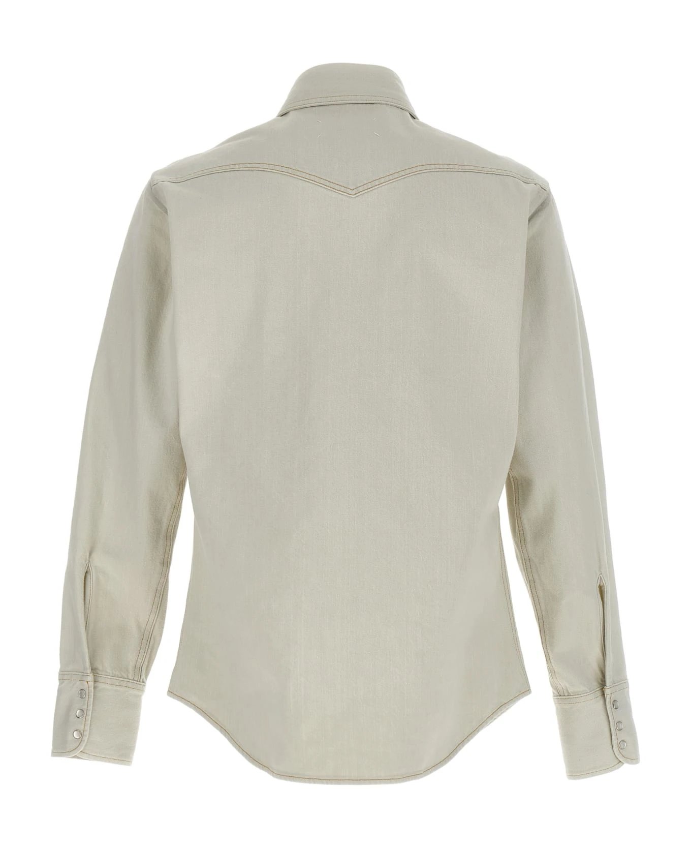 Camicia in denim di cotone, chiusura bottoni, taschino frontale, manica lunga con polsino.