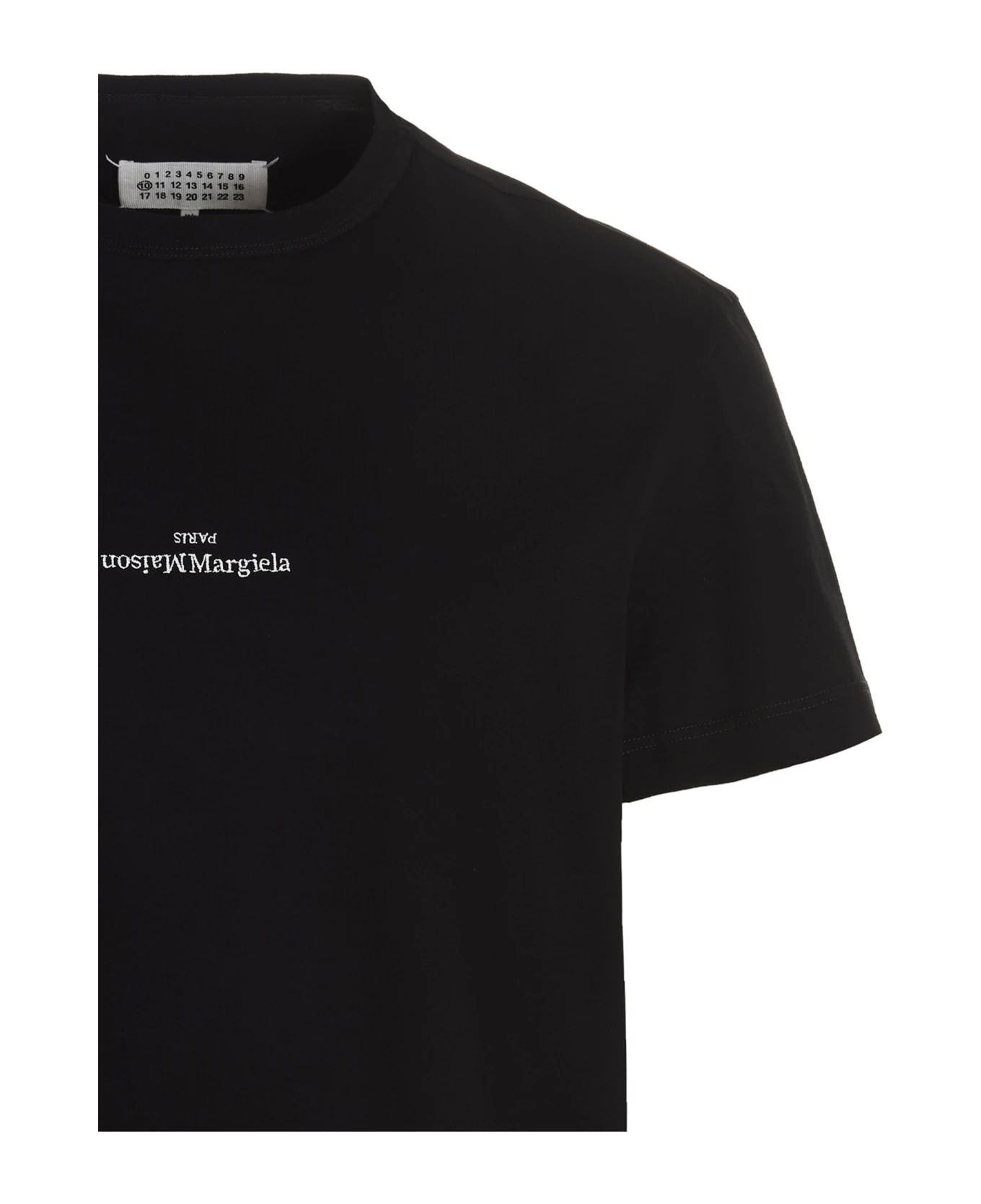 Cotton crew neck T-shirt with embroidered ‘Maison Margiela Paris’ logo on the front and short sleeves.