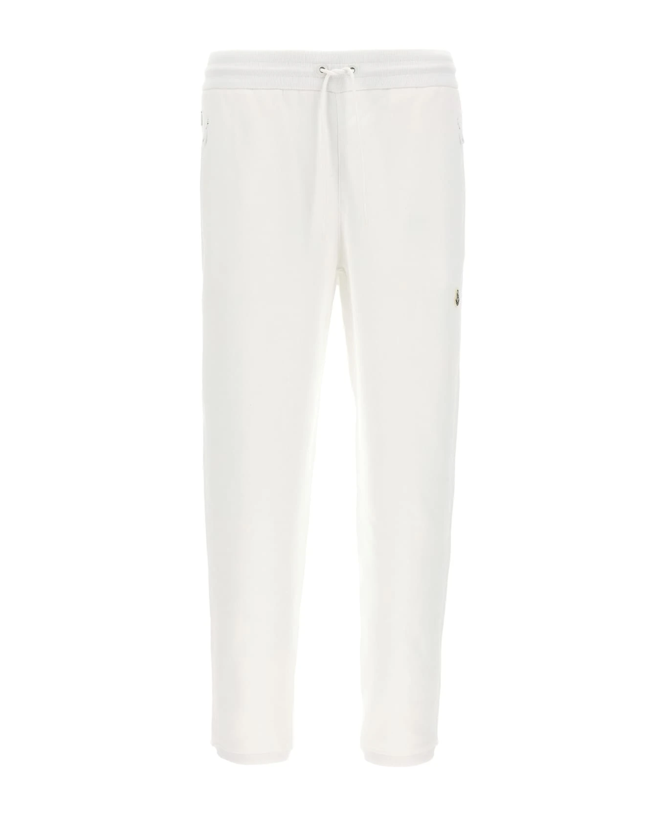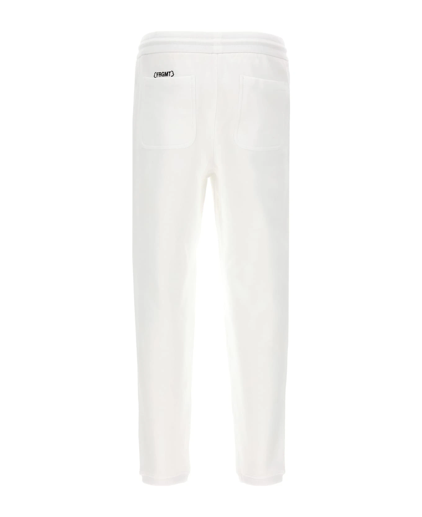 Moncler Genius x Fragment cotton joggers with back embroidered logo, front logo patch, an elastic and drawstring at the waist, pockets and elastic leg bottoms.