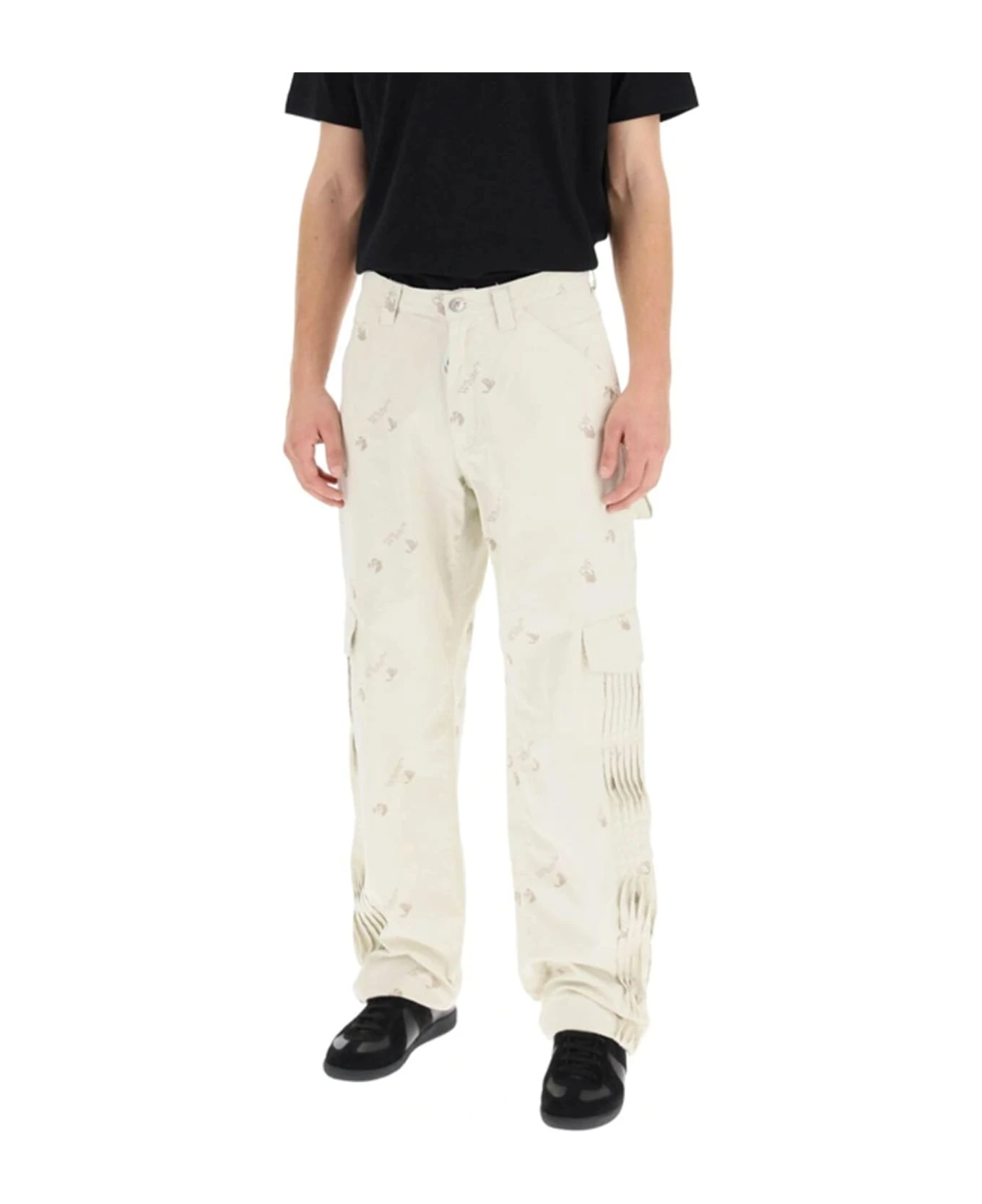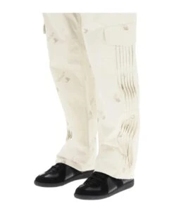 – Composition: 100% cotton – Belt Loops – Button and zip fastening – Five pockets – Two flap pockets – All over logo – Machine wash (delicate)
