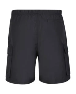 Elasticated waistband. Industrial-style front belt with logo. Side pockets. Color: Black/ yellow