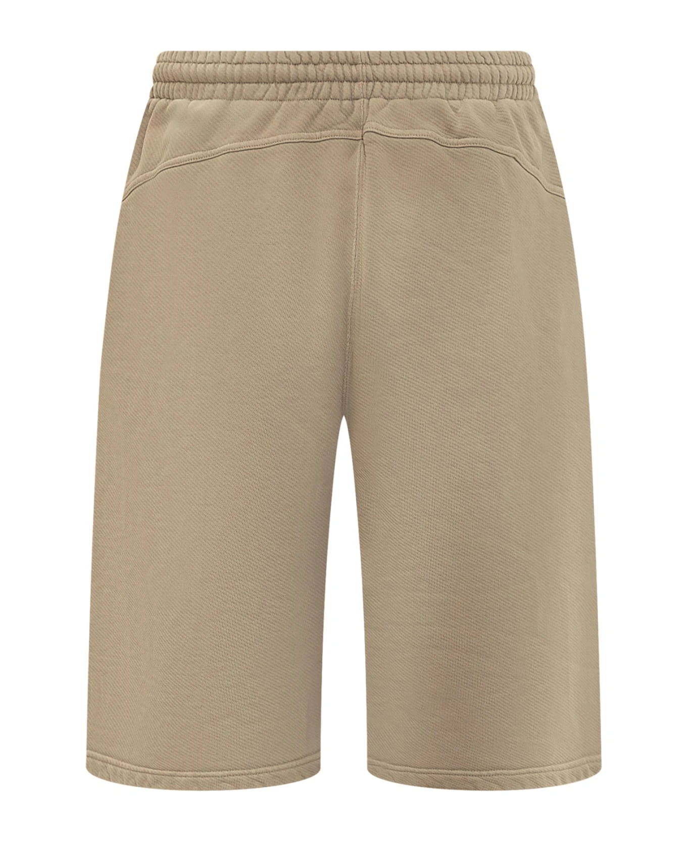 Beige shorts. Elastic and drawstring waist. Side pockets. Logo printed on the front.