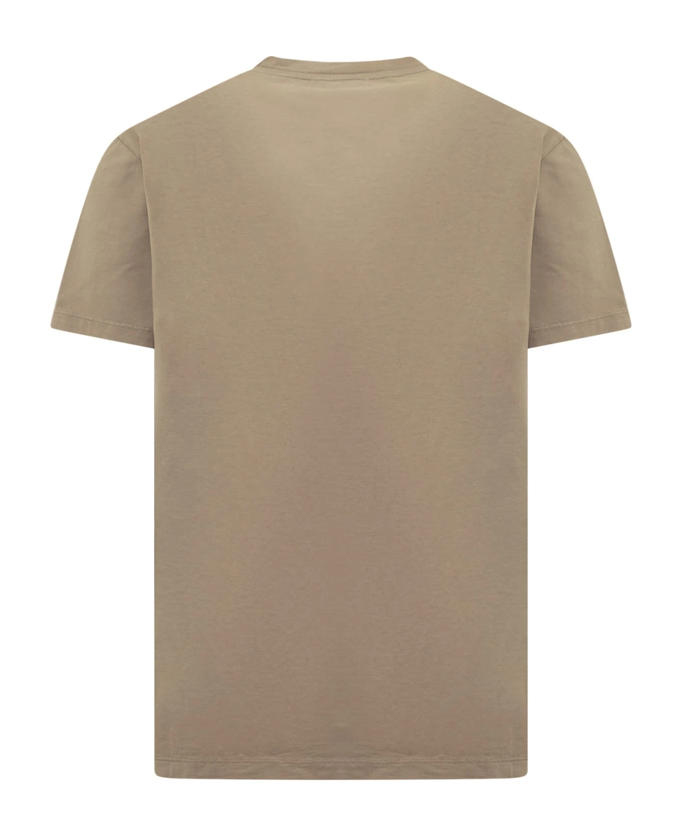 Beige T-shirt. Crew neck. Logo printed on the front. Ribbed collar.