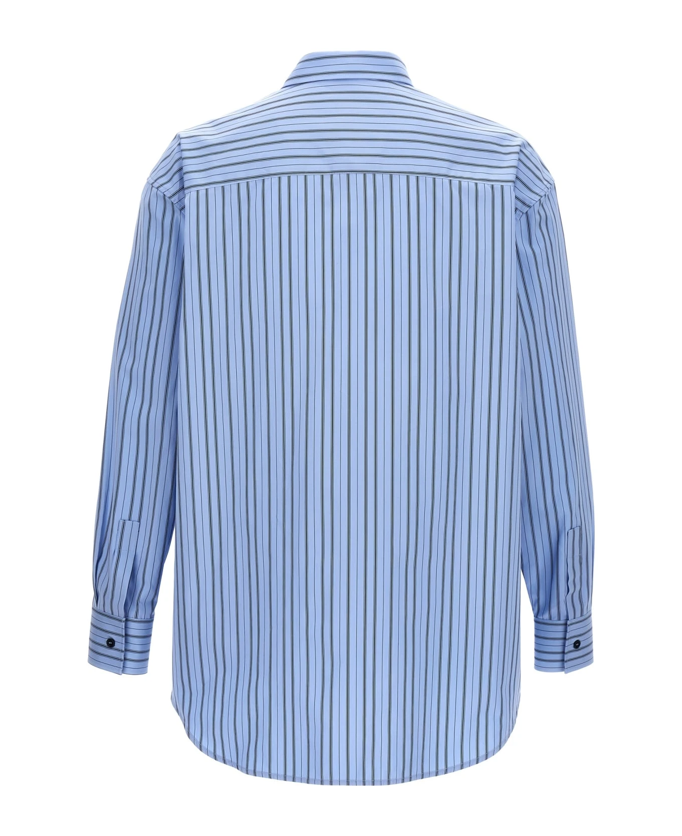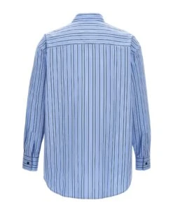 Cotton poplin shirt with striped pattern, button closure, chest pocket with embroidered logo.