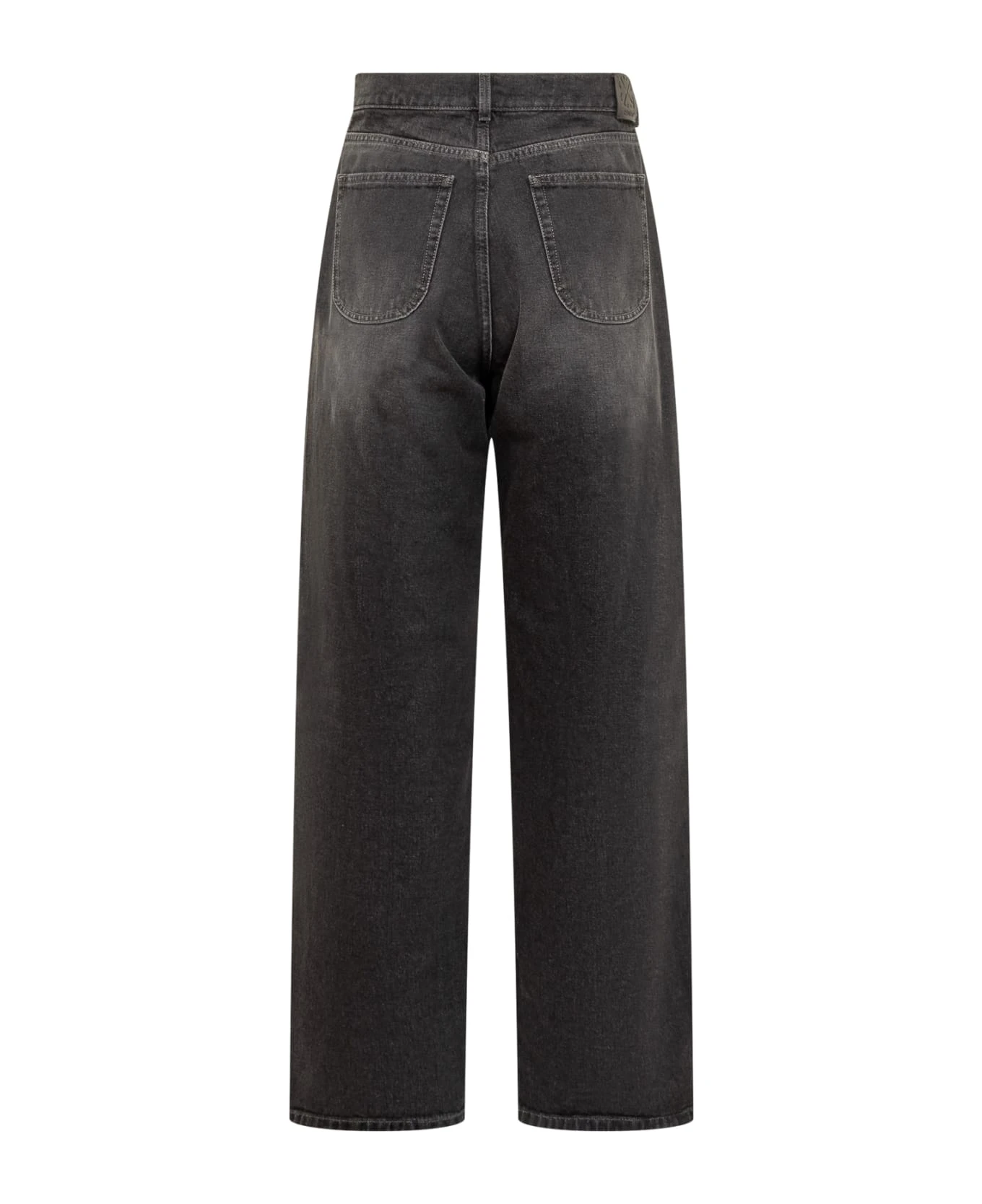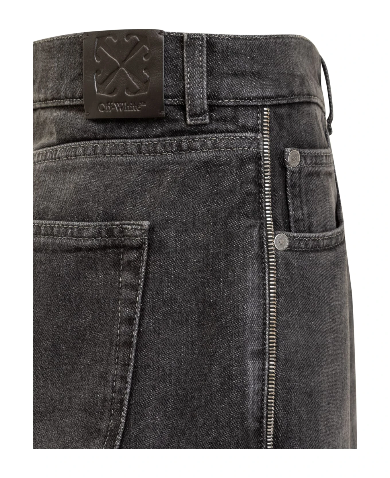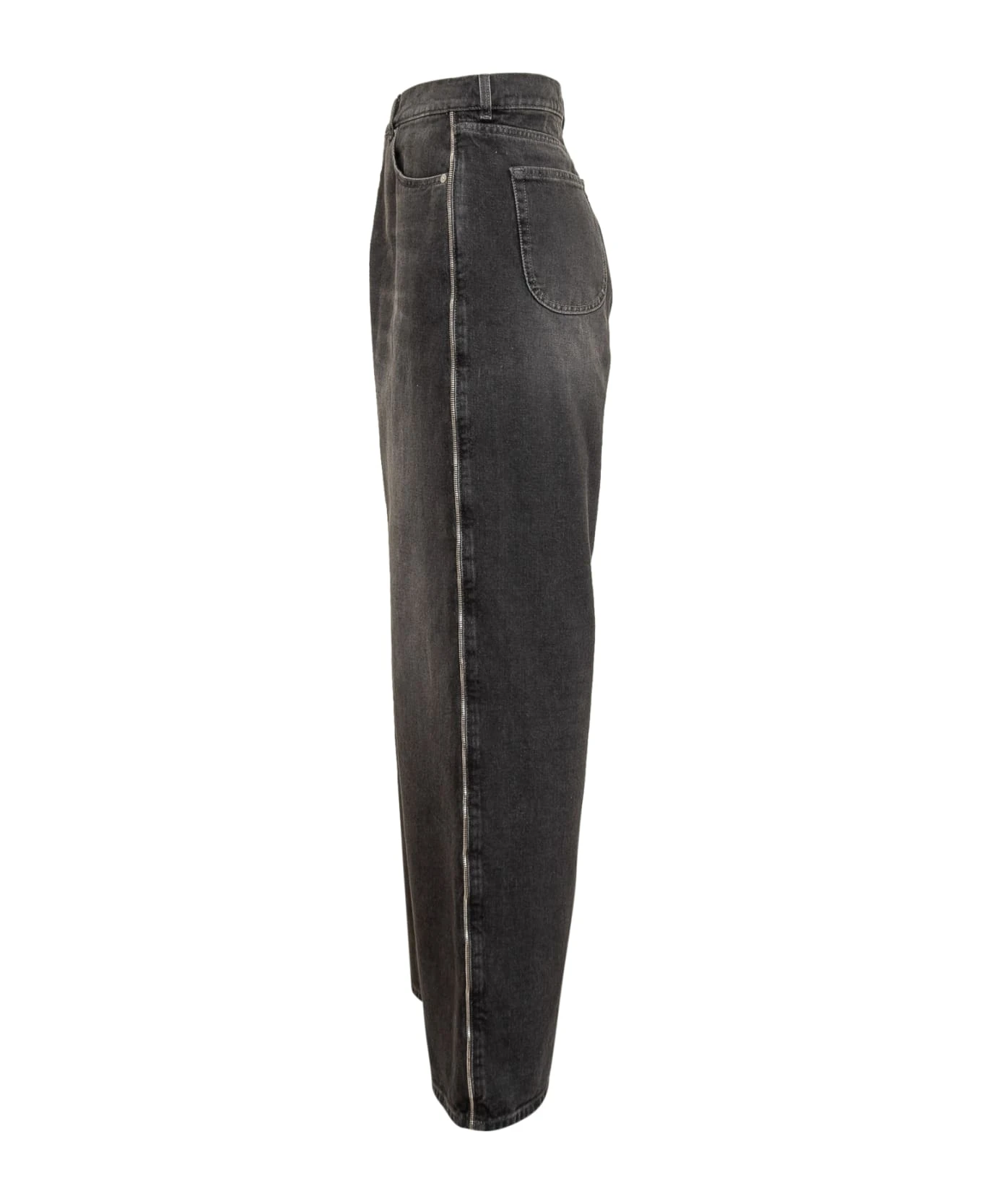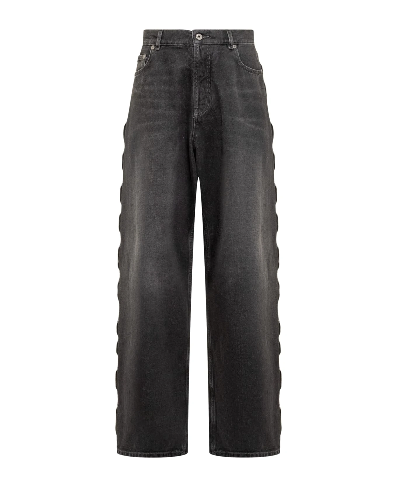 Long jeans. Button closure. Belt loops. Five pockets. Applied zipper detail on sides. Loose fit.