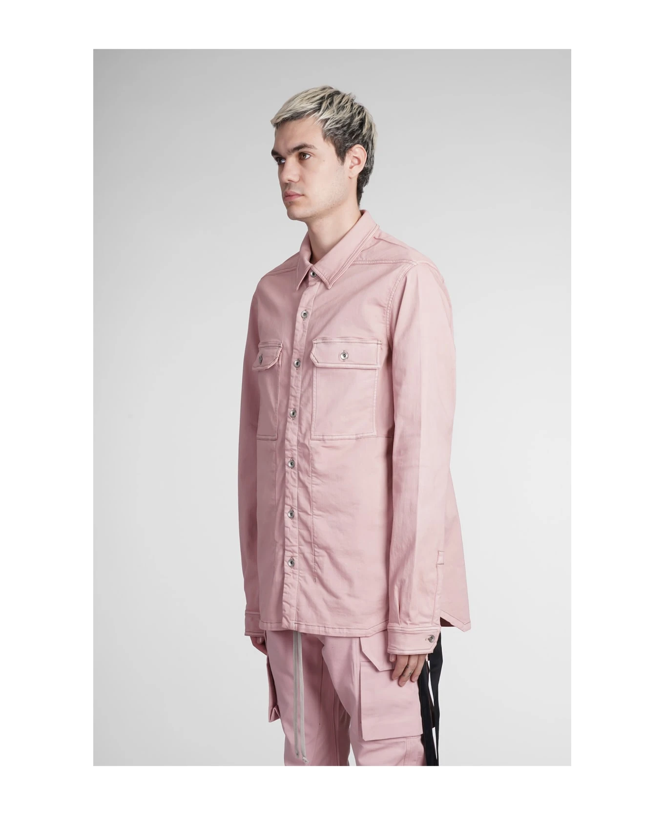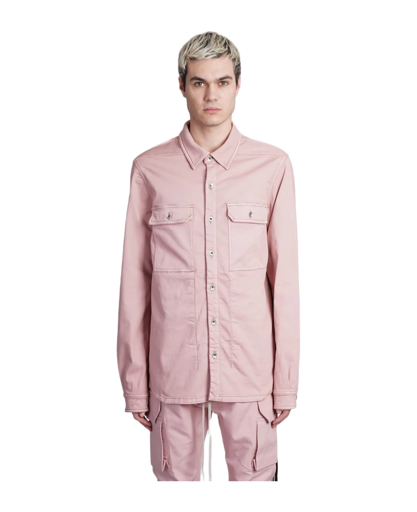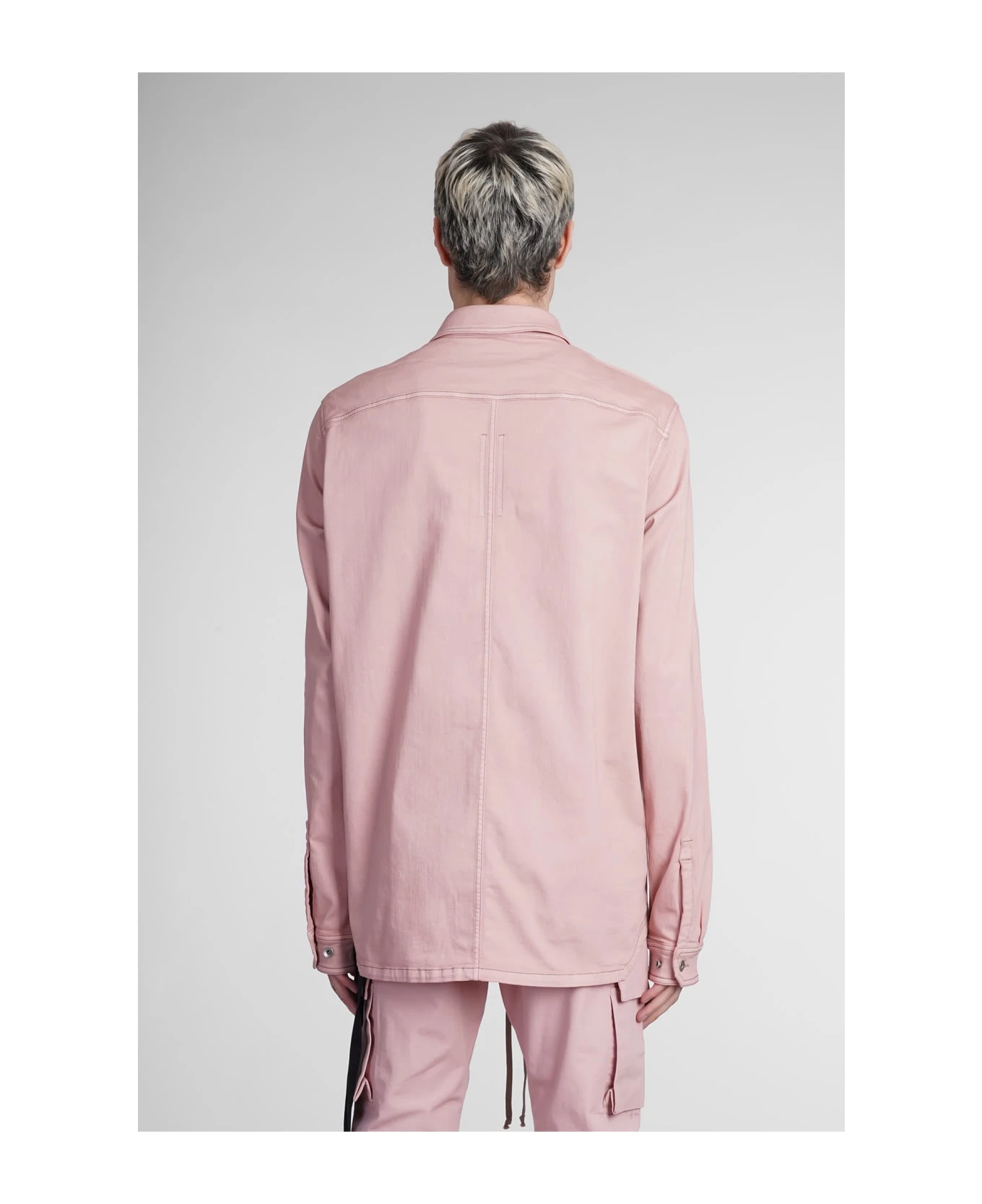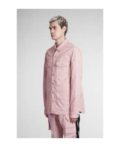 Outhershirt Shirt in rose-pink cotton, collar, long sleeves, frontal buttoning, flap pockets, 90% cotton, 7% Polyester , 3% rubber fiber, Made in Italy, Model is 1. 83 and wears size M
