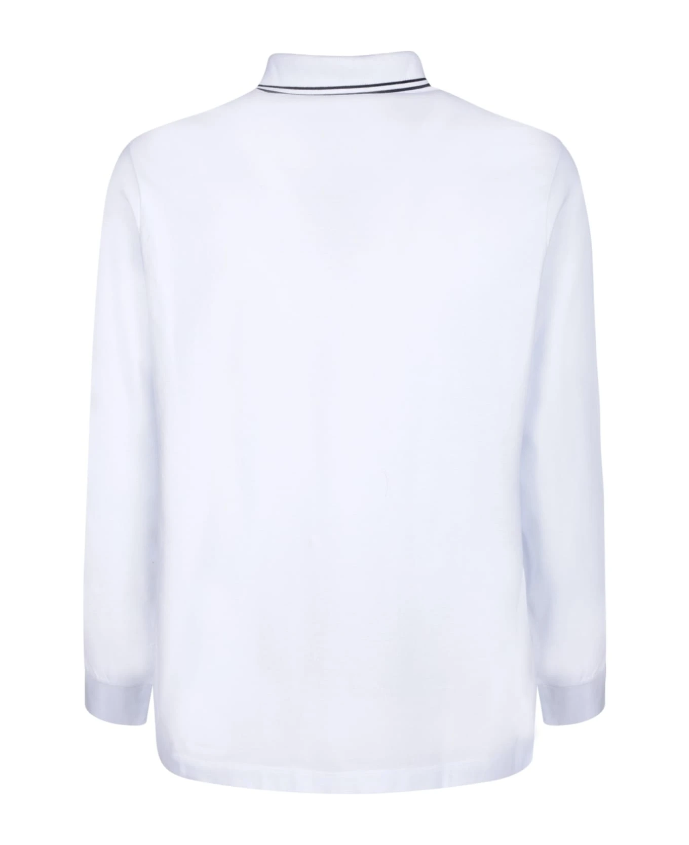 Classic collar. Striped details. Front button fastening. Long sleeves. Logo patch at the chest. Ribbed details. Tonal stitching. Slim fit. Straight hem. Color: white