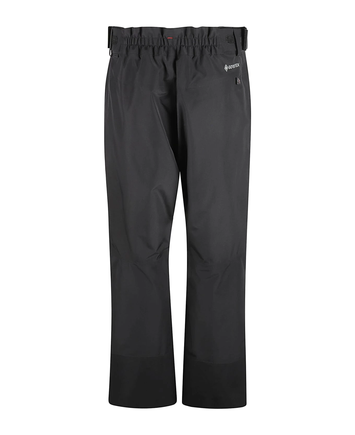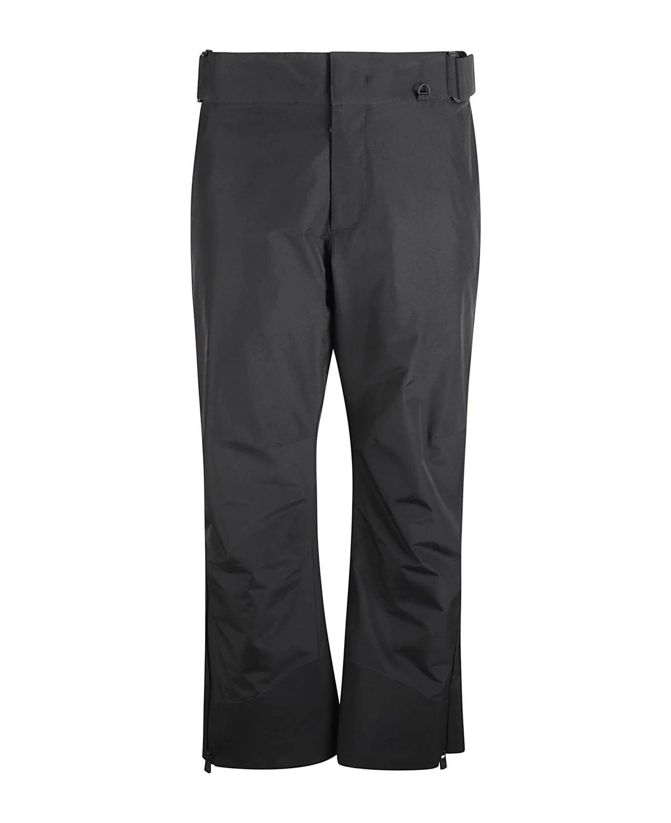belted ski trousers from MONCLER GRENOBLE featuring black, stretch-design, taped seams, concealed front fastening, belted waist, D-ring findings, side pouch pockets, ankle zips and straight leg.