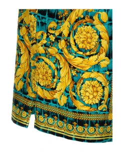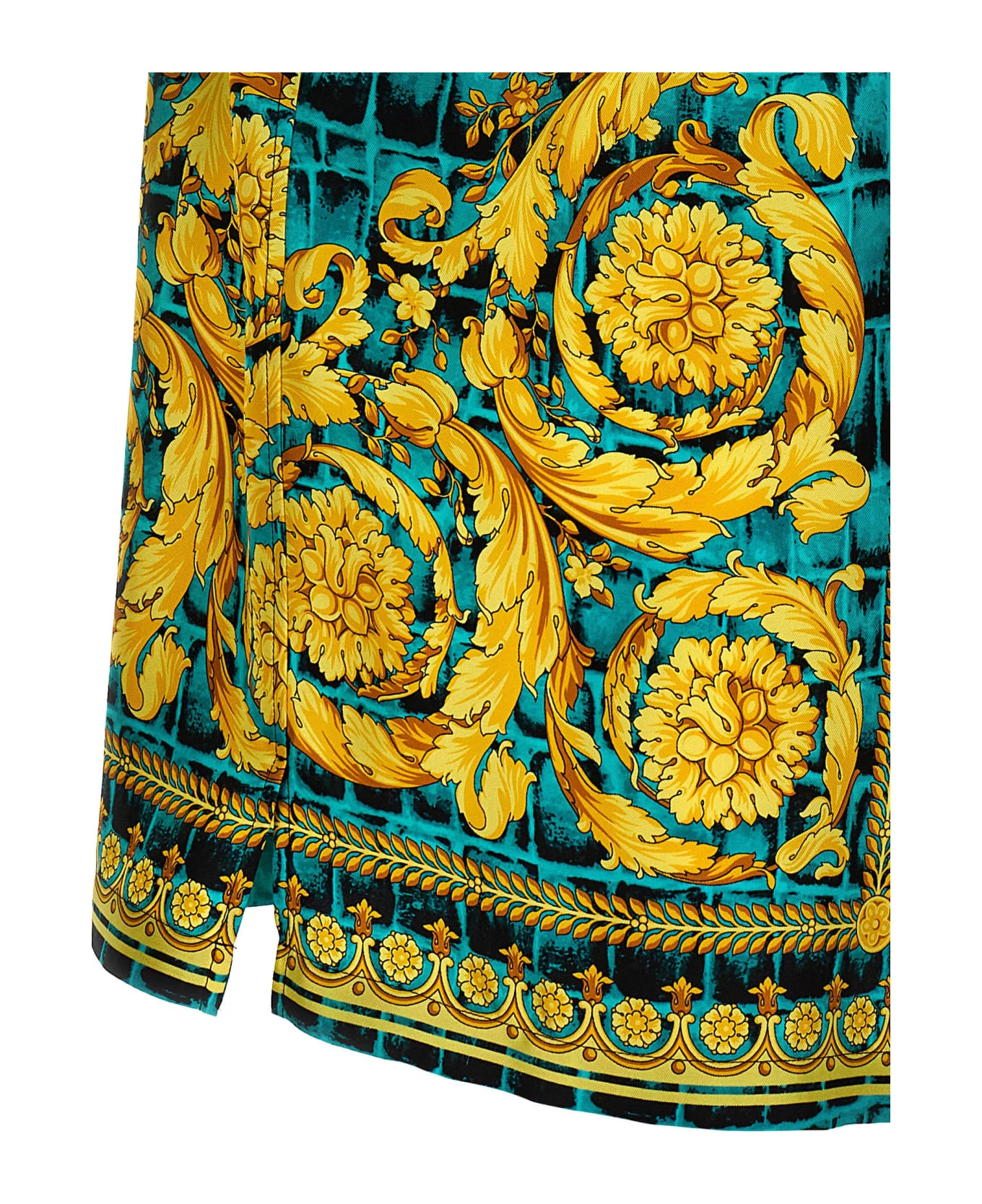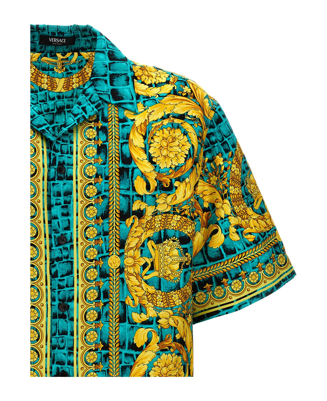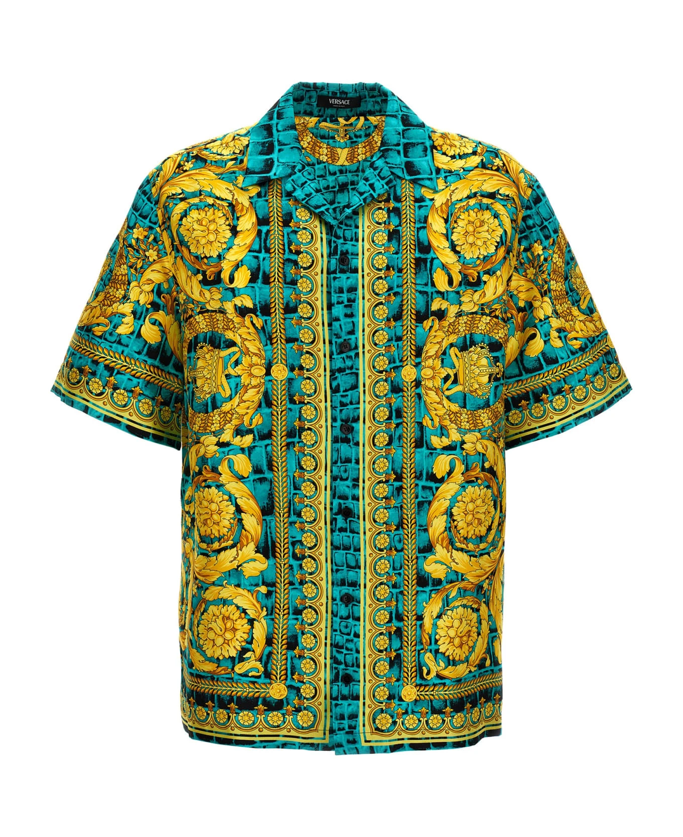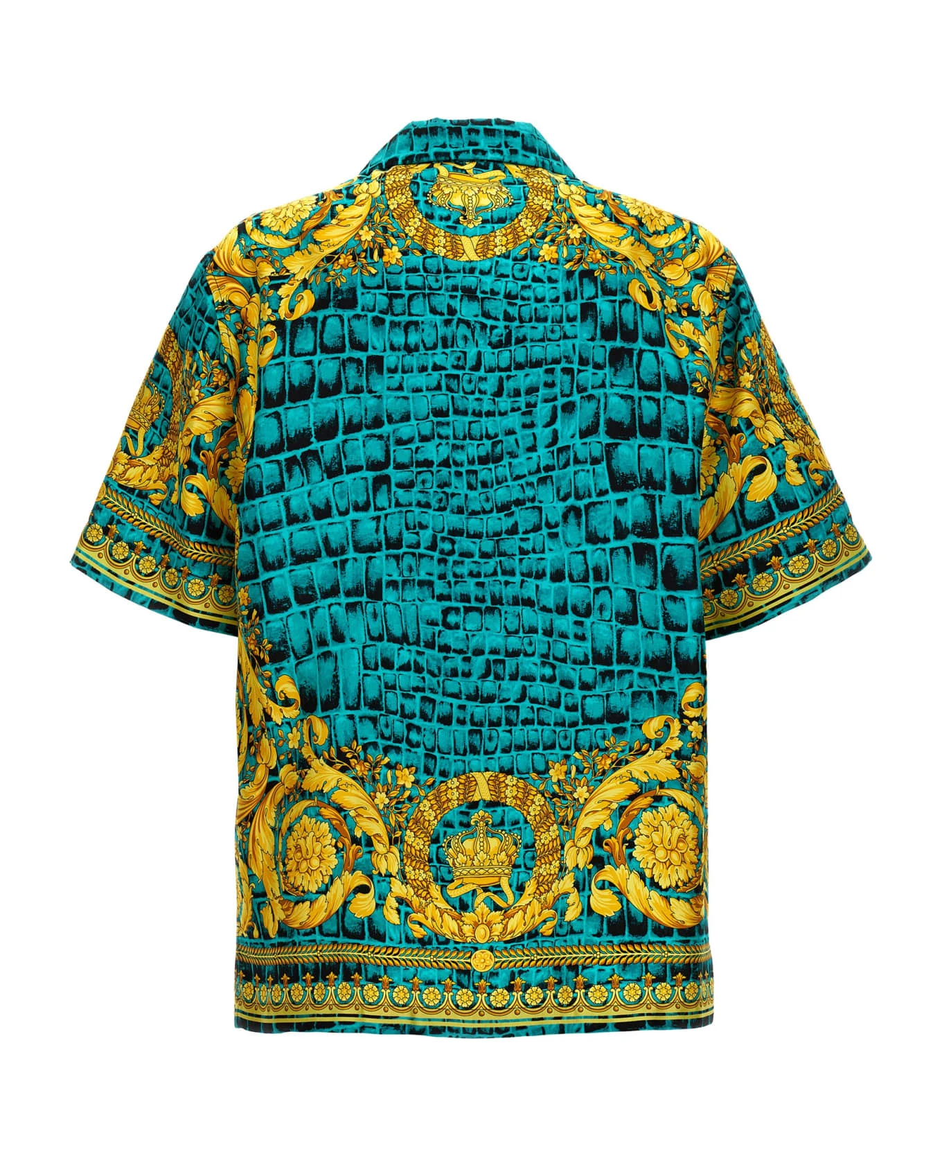 ‘Baroccodile’ print silk shirt with button closure, short sleeves.