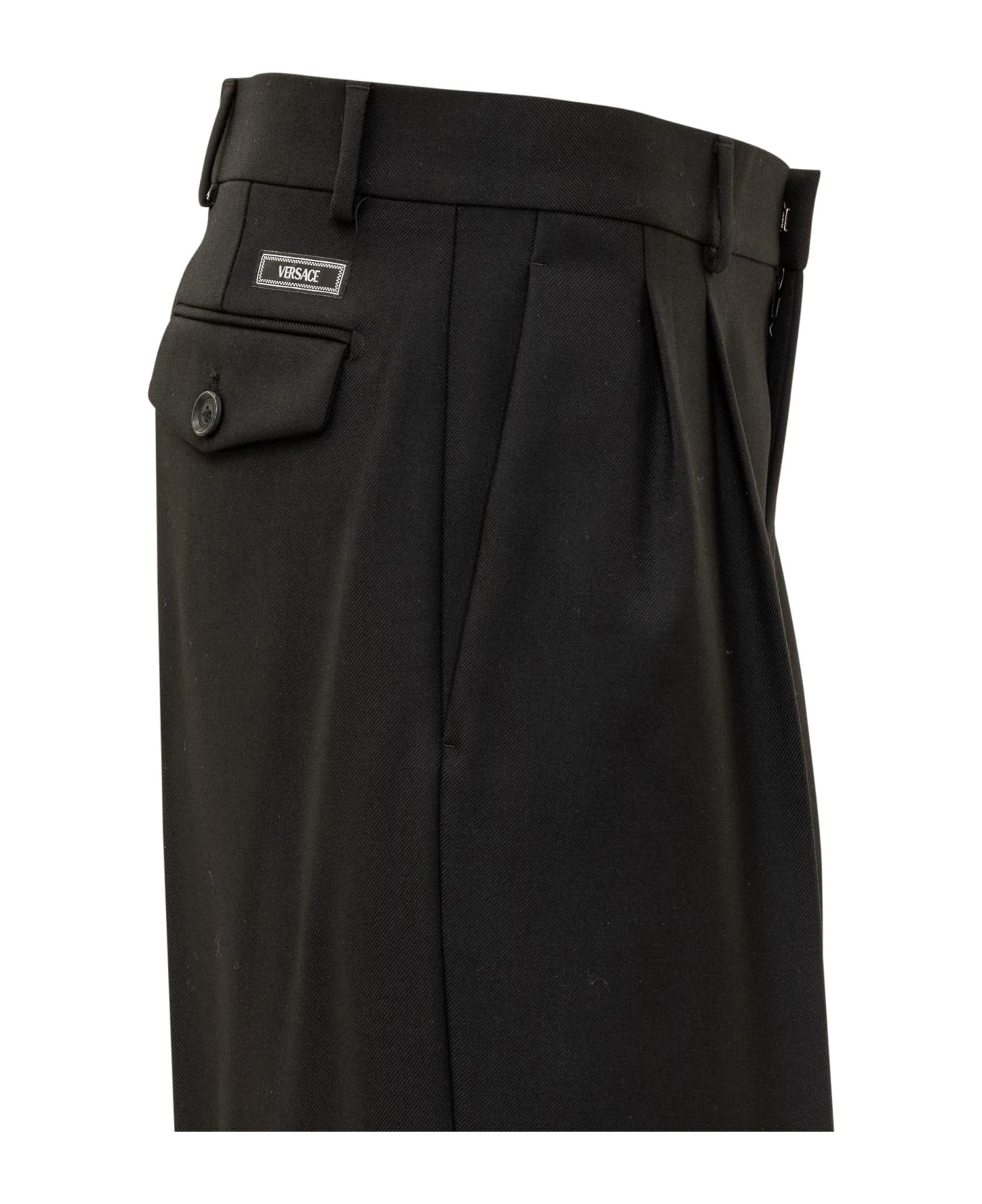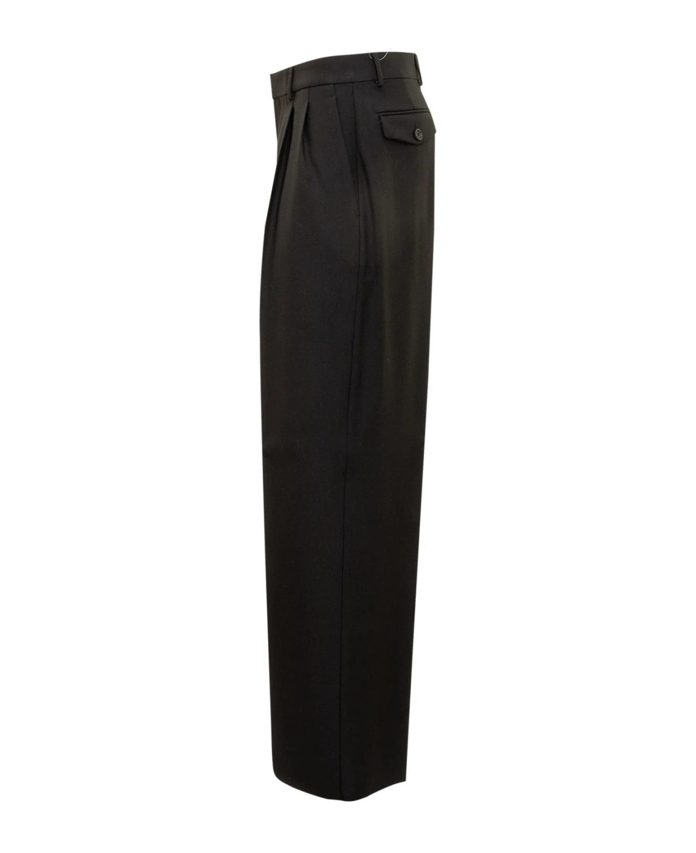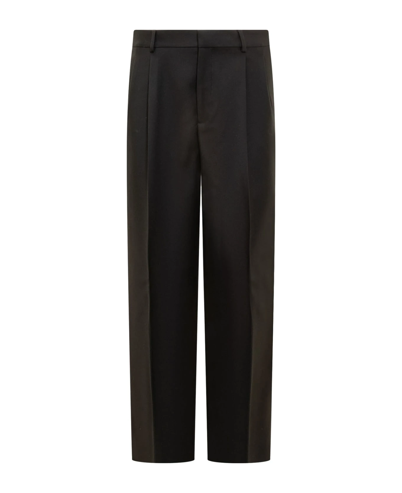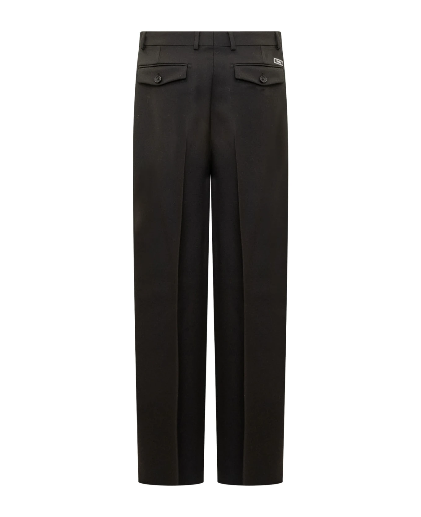 Black long trousers. Button, hook and zip closure. Logo on the back. Belt loops. Side and back pockets.