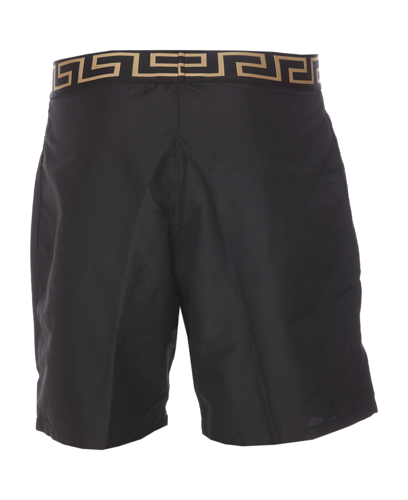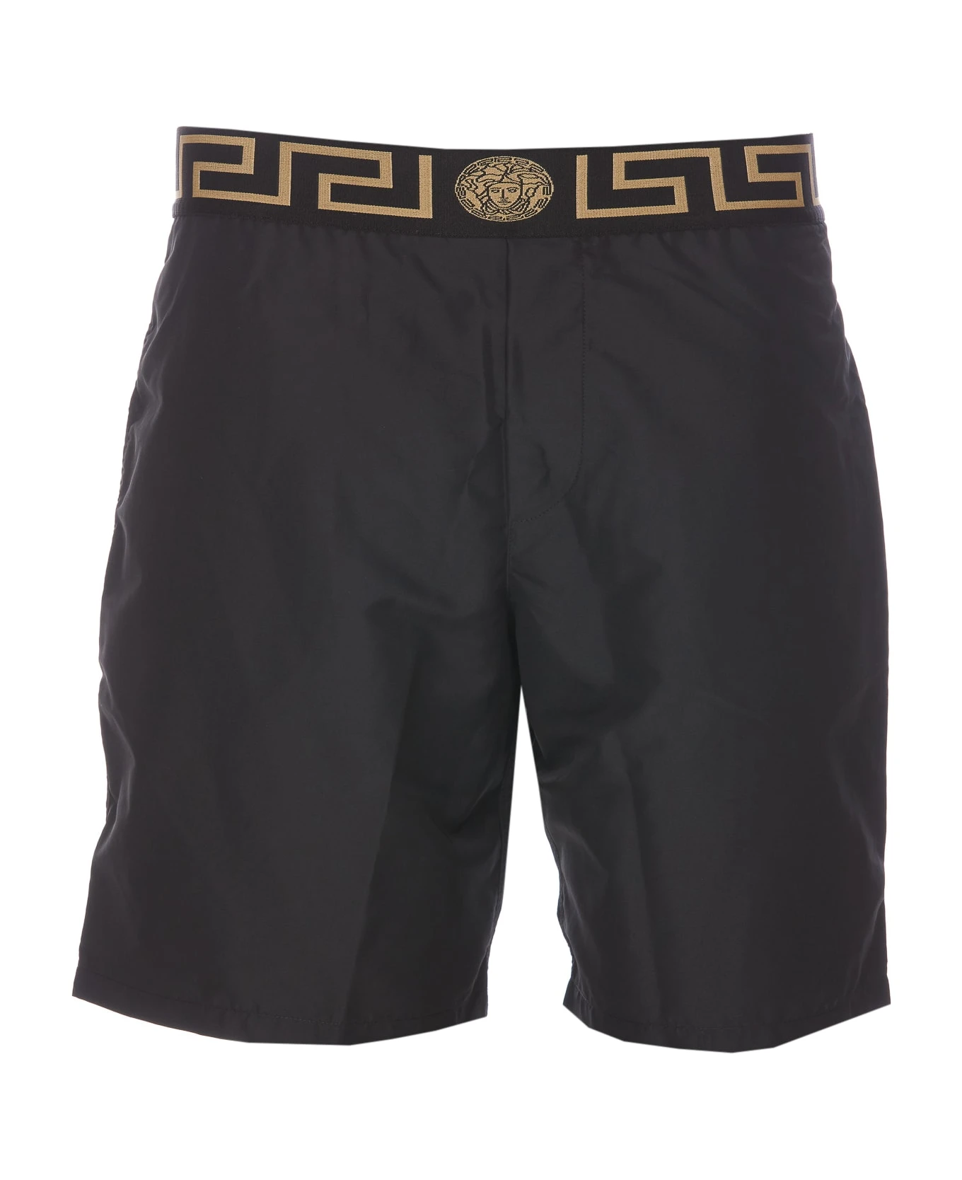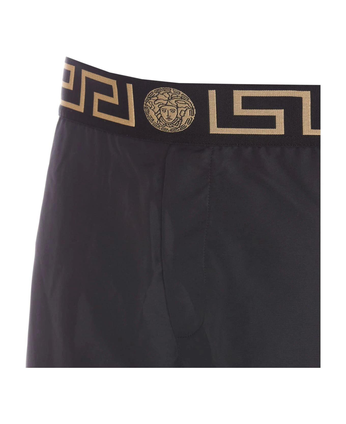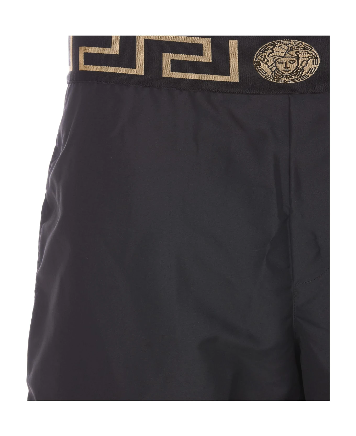 Versace black Greca logo swimwear, Greca logo on waist, lateral pockets